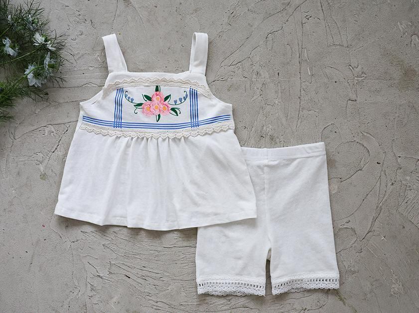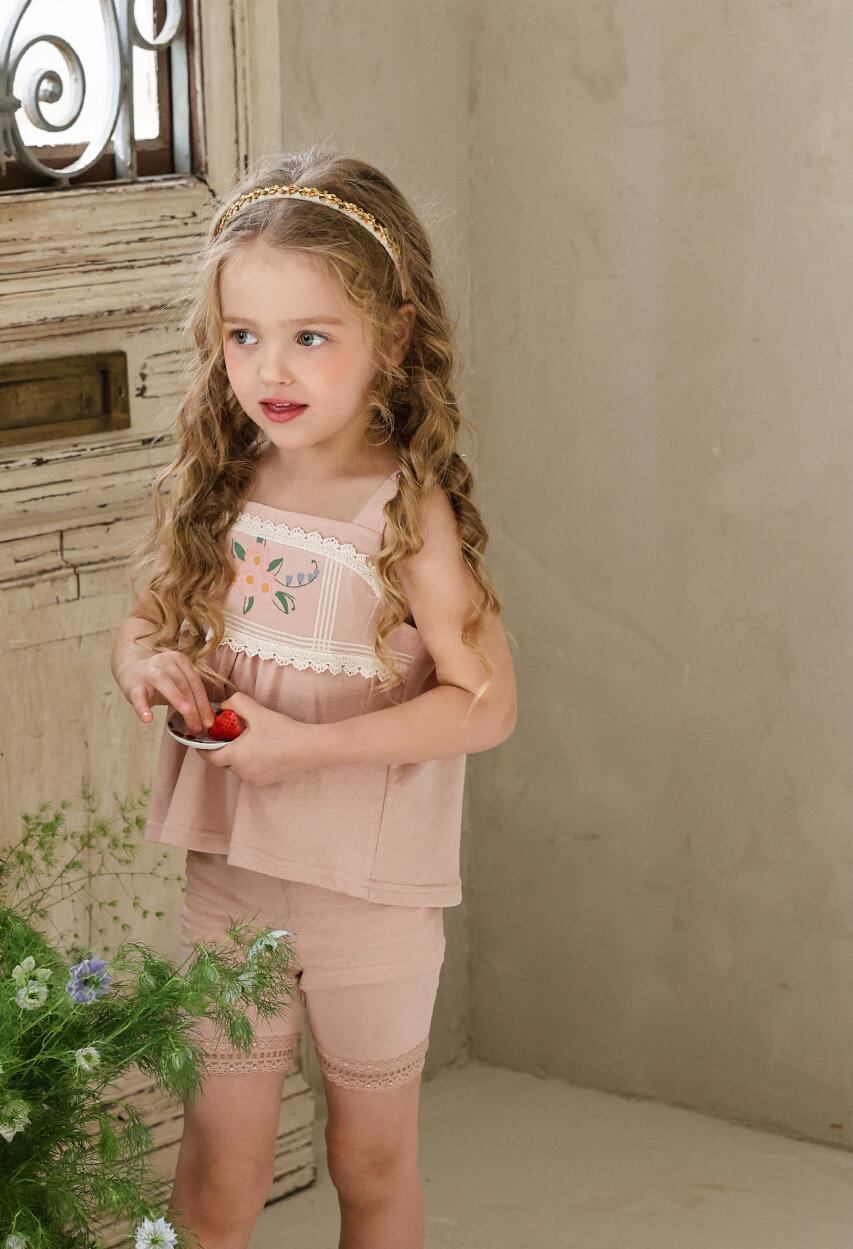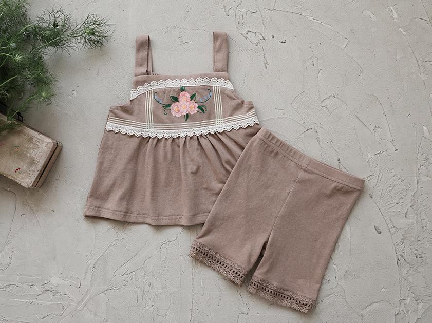 肩のレースがあしらわれた同素材のトップスと組み合わせれば、涼やかで統一感のあるセットアップコーデが完成します。