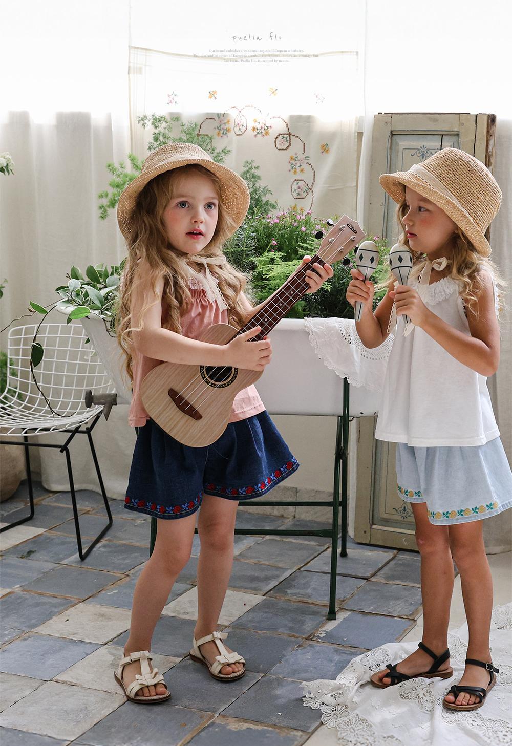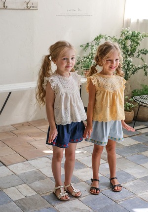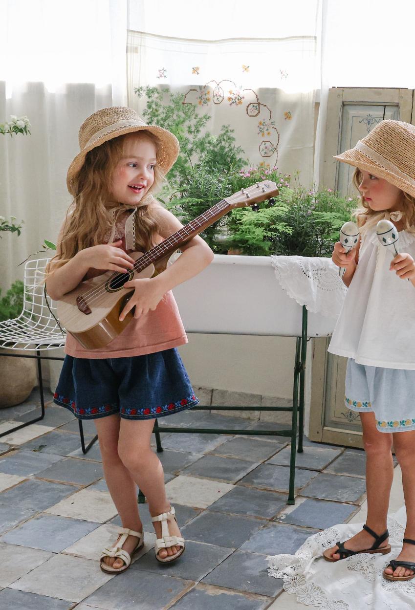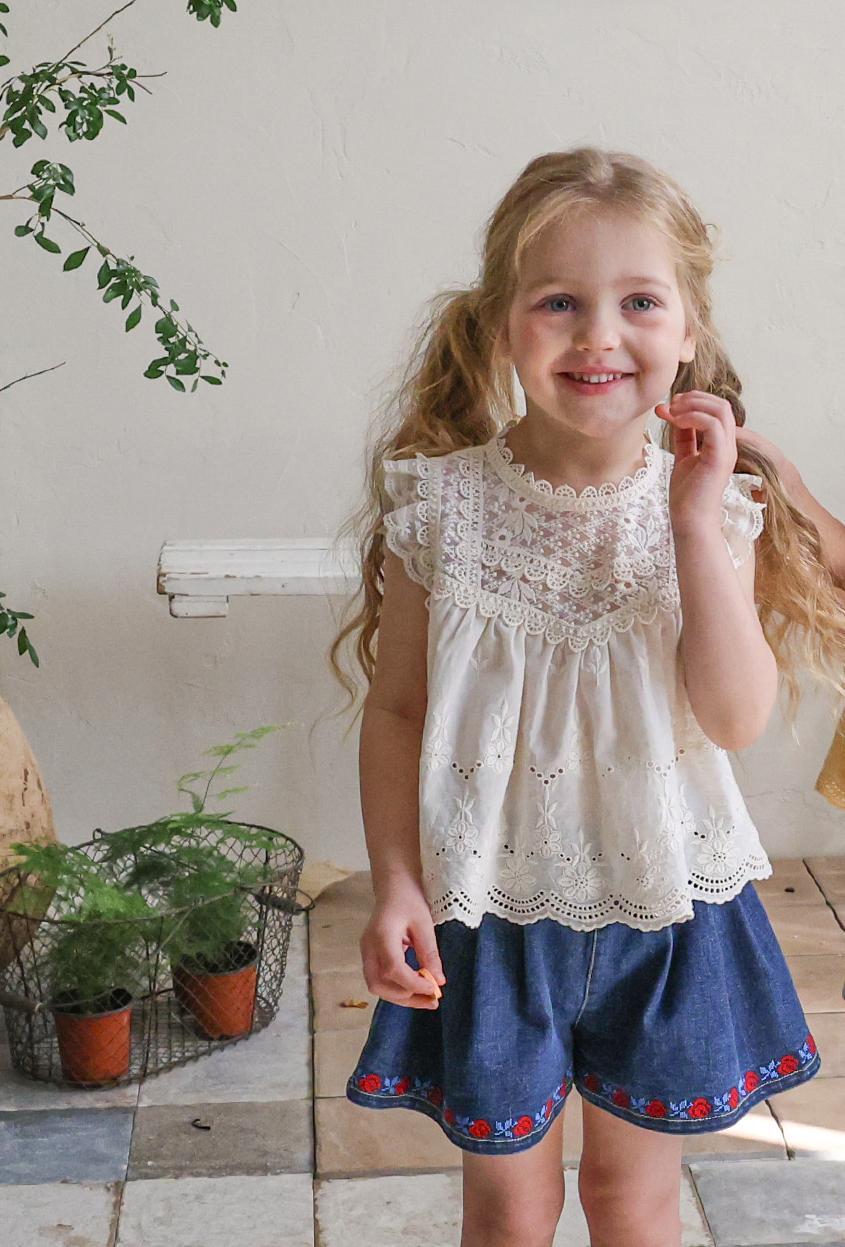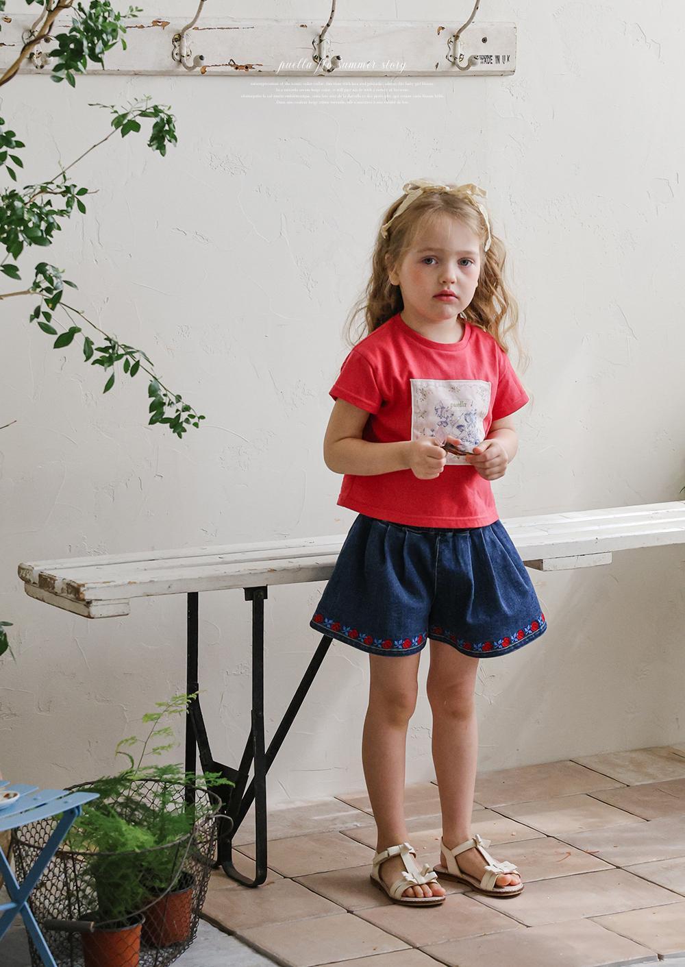 スカートのように見えるデザインで、見た目の可愛らしさと動きやすさを両立。元気に動き回るお子さまにも安心してご着用いただけます。裾に施されたフラワー刺繍が、さりげなく華やかなアクセントとなり、シンプルながらも存在感のある一枚です。