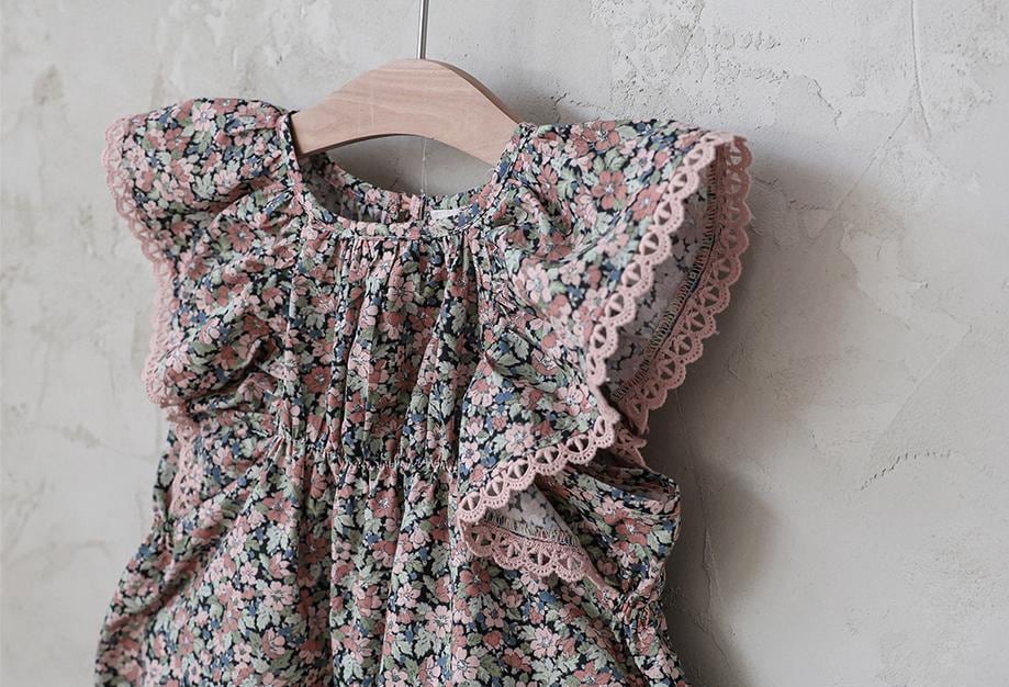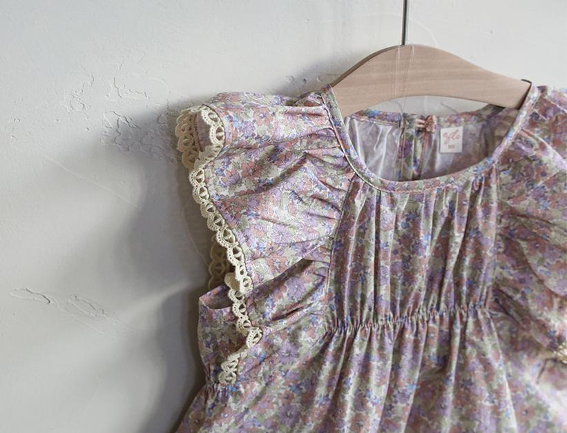 肩にはふんわりとしたフリルをあしらい、動くたびにやさしく揺れる可愛らしいアクセントに。さらにレースの飾りをプラスすることで、上品でガーリーな雰囲気を演出しています。