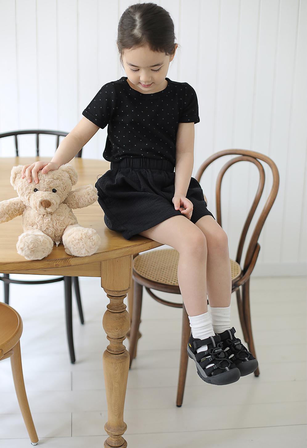 カラーは、可愛らしいドット柄をあしらったアイボリーとブラック、そしてシンプルで落ち着いた無地のグリーンをご用意。日常にさりげない可愛らしさを添えてくれる、デイリーアイテムとしておすすめの一着です。