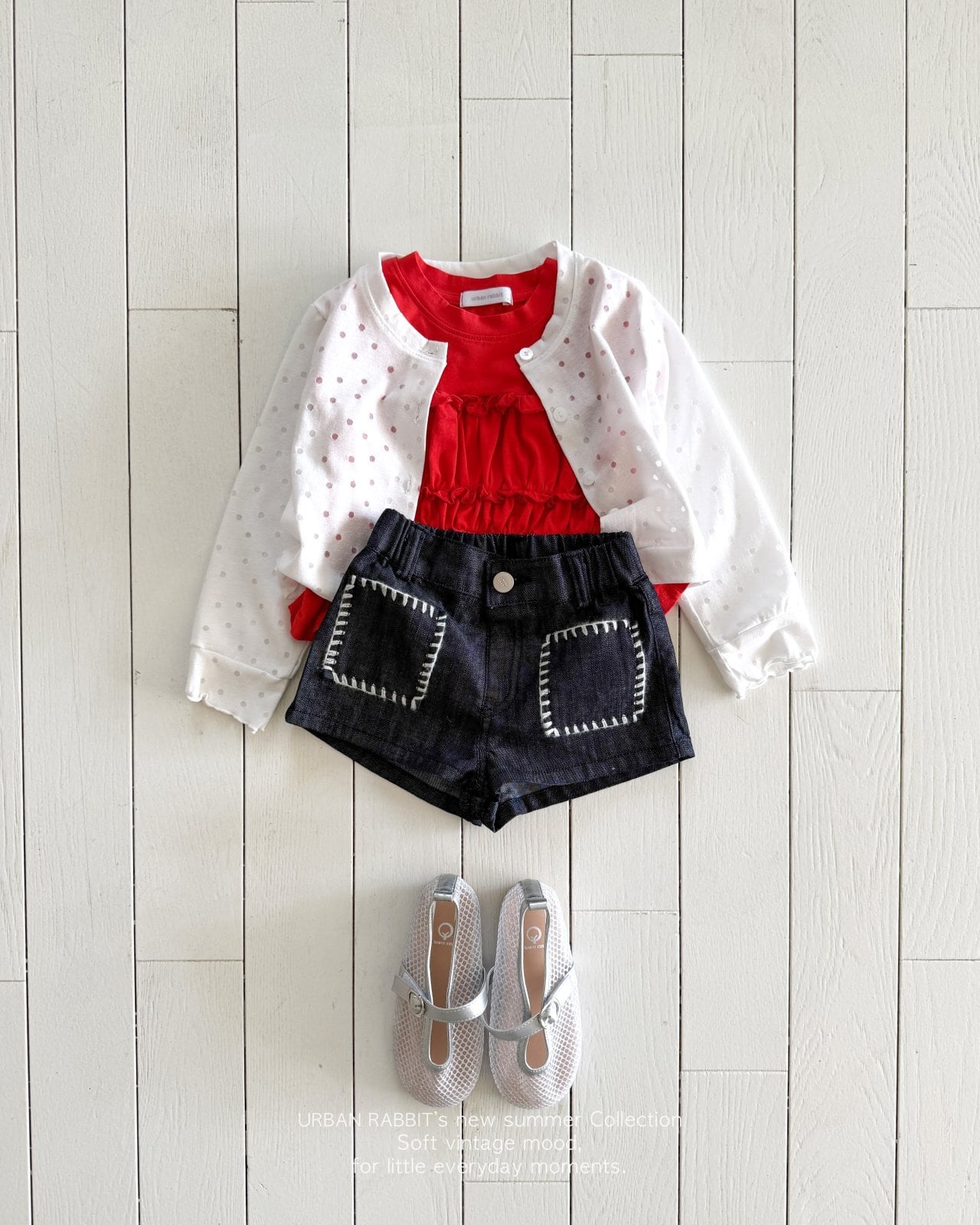 やわらかなコットンデニムとウエストゴム仕様により、動きの多いお子さまでも快適な履き心地。短めの丈感で、暑い夏の季節にも涼しくご着用いただけます。