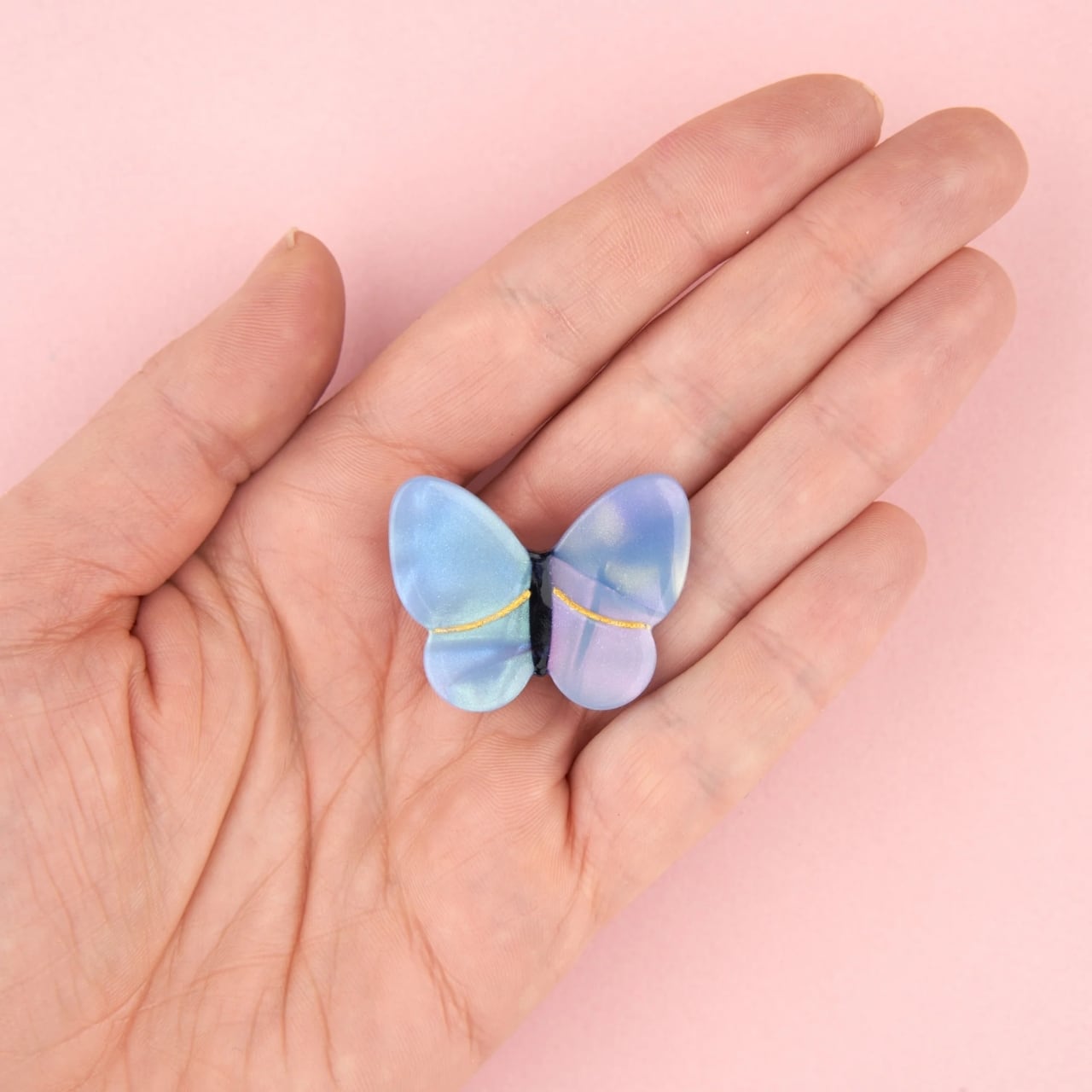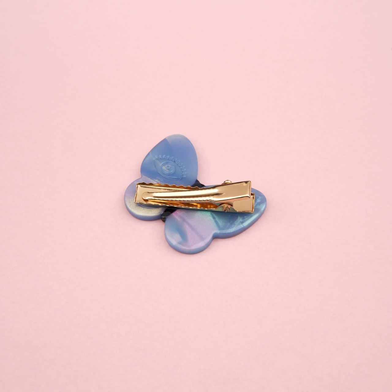 Feeling like your braid needs a little extra sparkle? Clip on a lavender butterfly at the hair tie to finish it off beautifully. This unique, shimmer-filled hair clip, like a tiny retro jewel, lands joyfully in your hair.