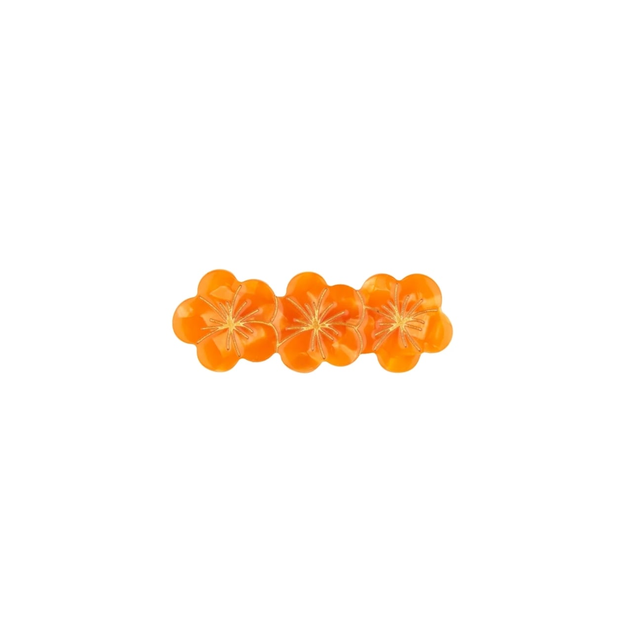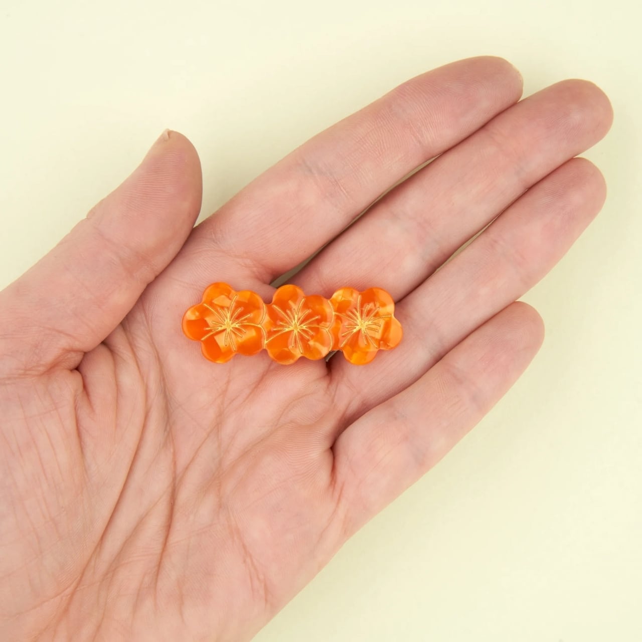 To tame those wind-blown strands, we’re going for the nasturtium clip! Three bright orange flowers with a charming retro vibe bring a welcome splash of color to our hair. Perfect for little ones and grown-ups alike.