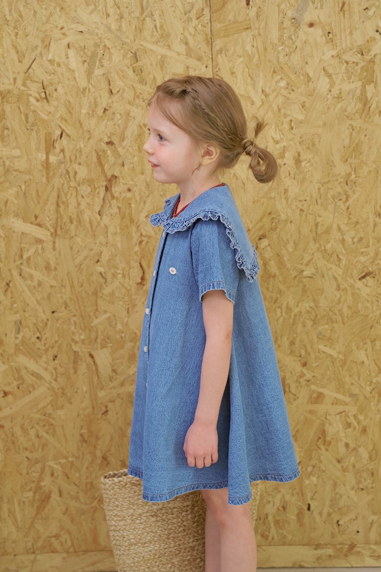 セーラー襟のガーリーな雰囲気が魅力のデニムワンピースです。