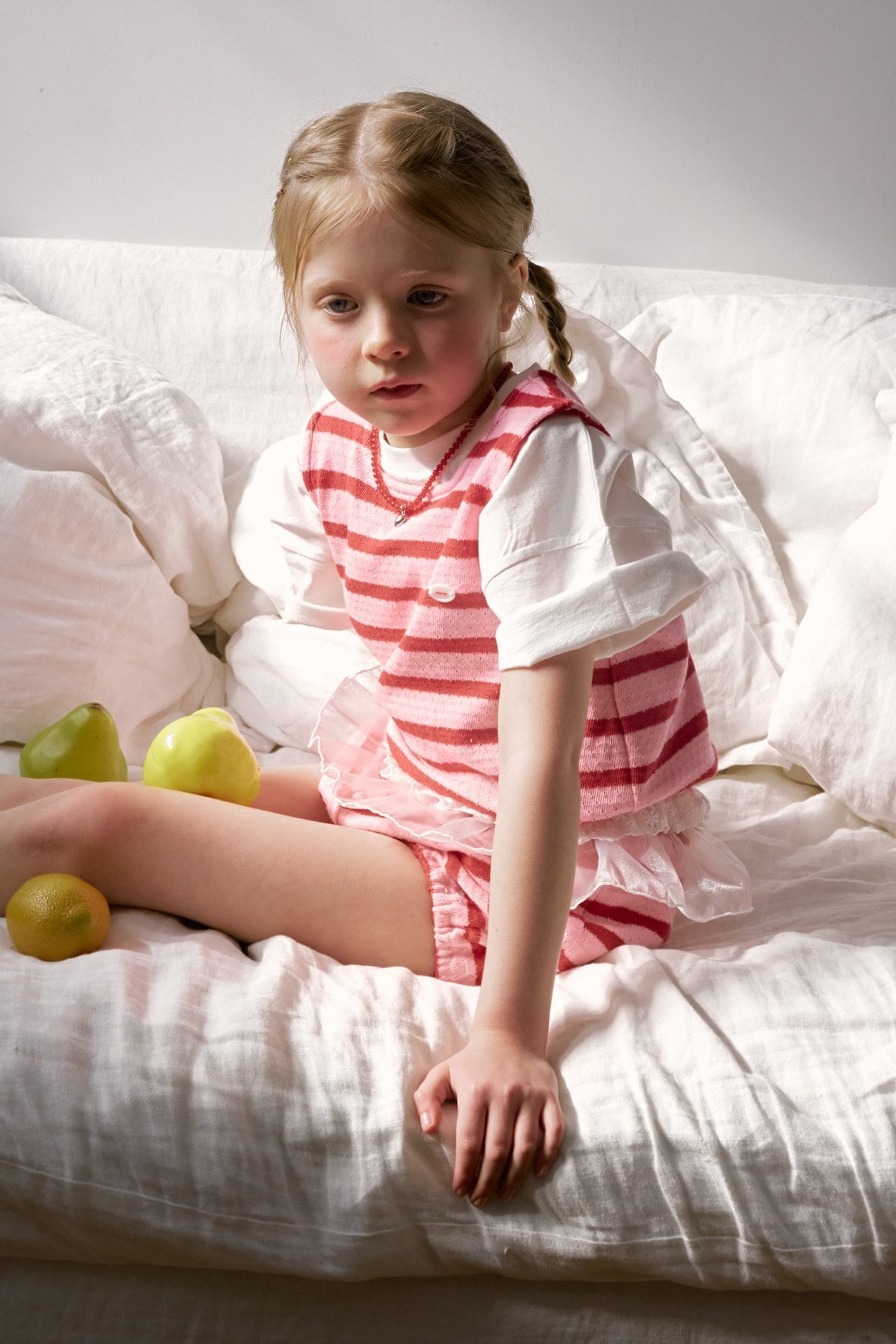 シンプルな中にも女の子らしいディテールが光る一着です。