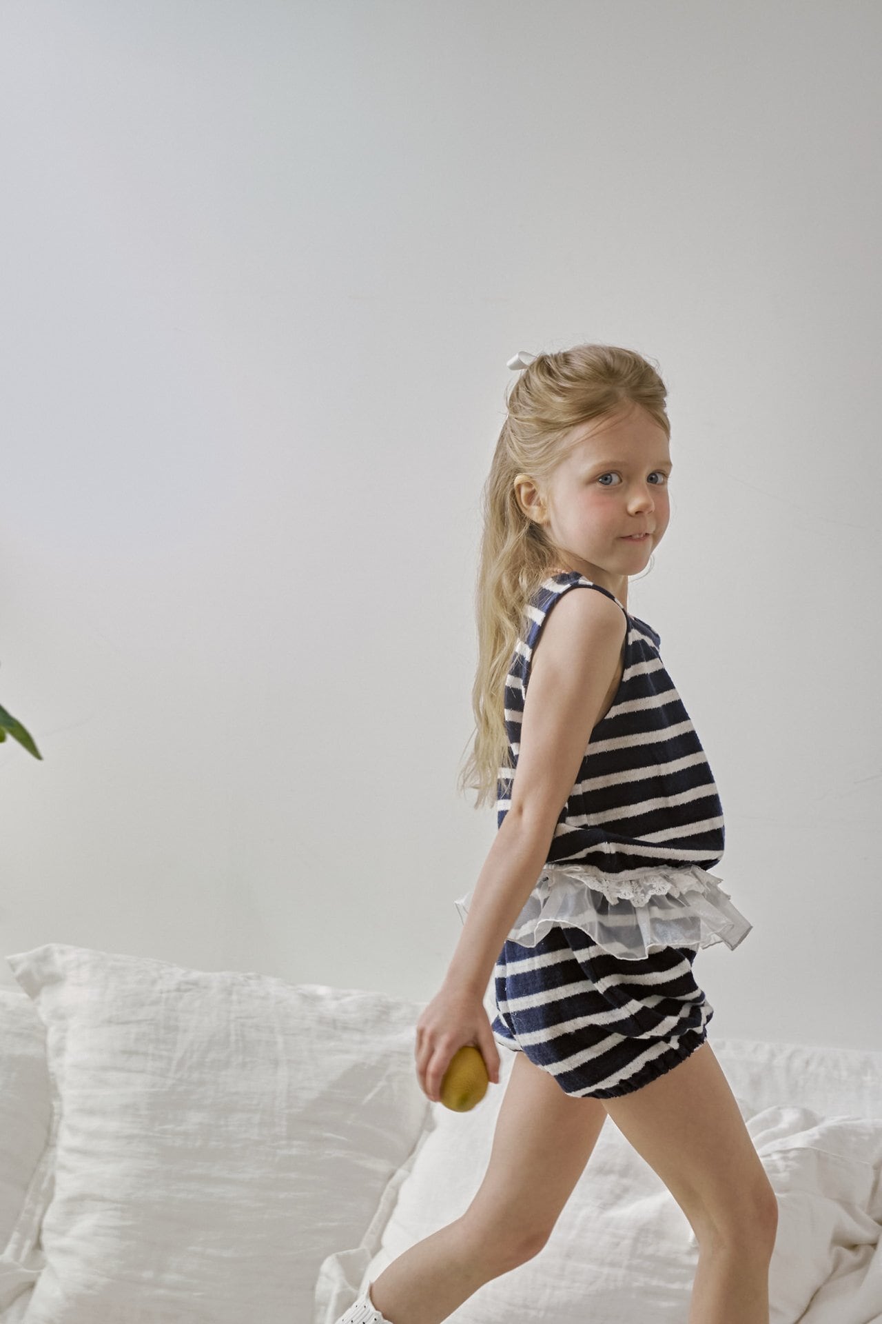 袖なしのトップスとショートパンツの組み合わせで、夏にぴったりの軽やかなデザインとなっております。