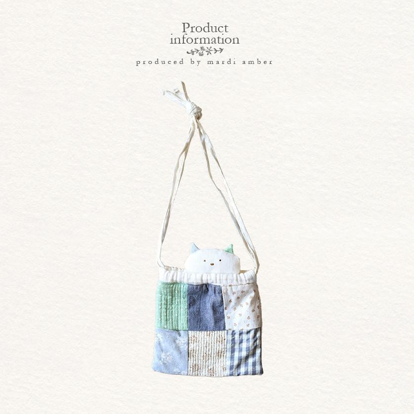 バッグの開口部には、かわいらしい猫のぬいぐるみをあしらい、さりげないアクセントをプラスしました。