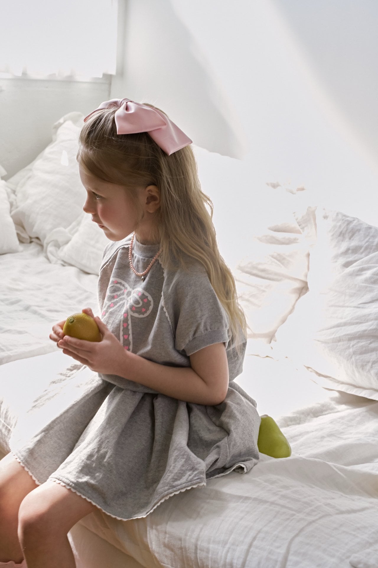 ふんわりとしたパフスリーブがやさしく可愛らしい印象を与え、