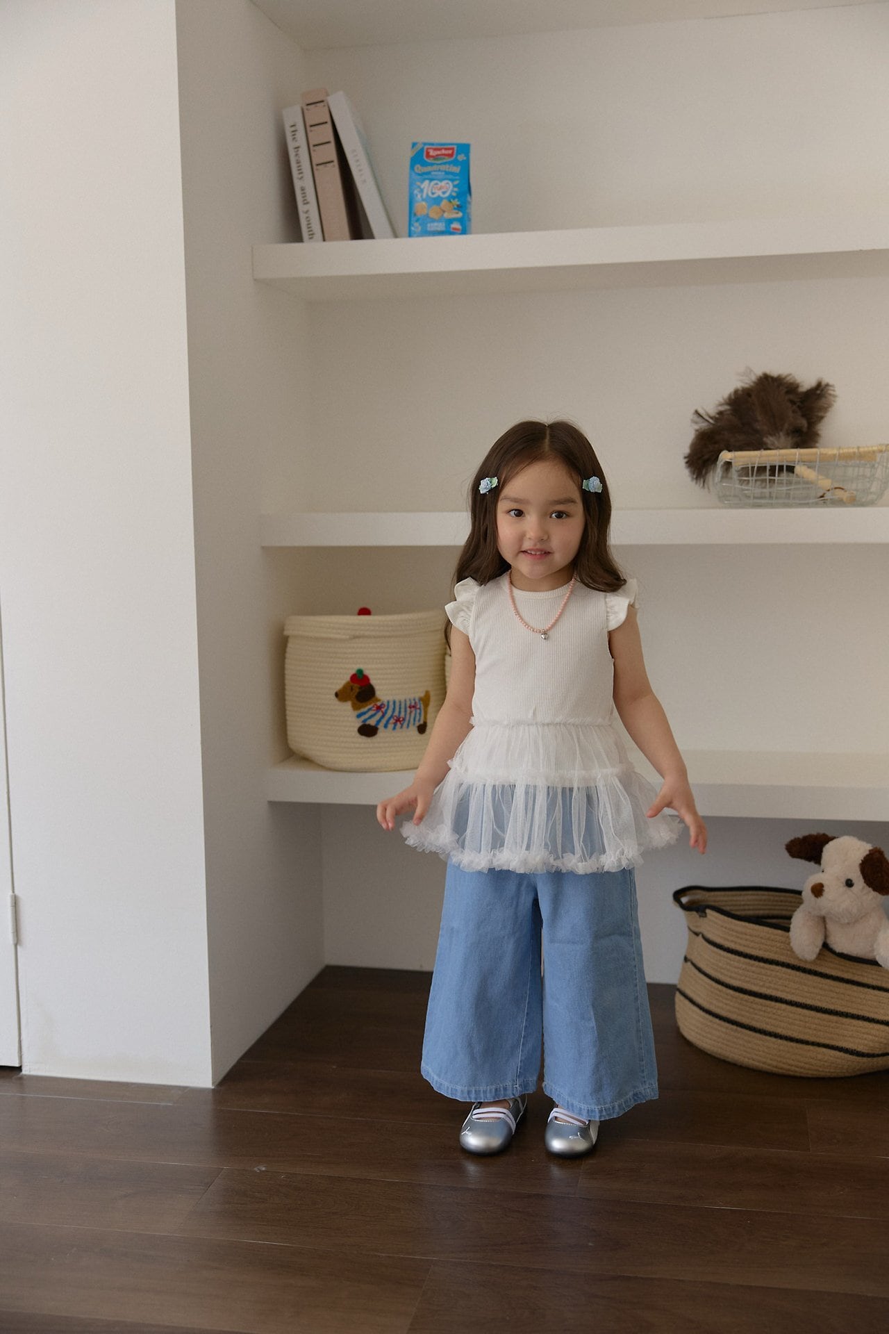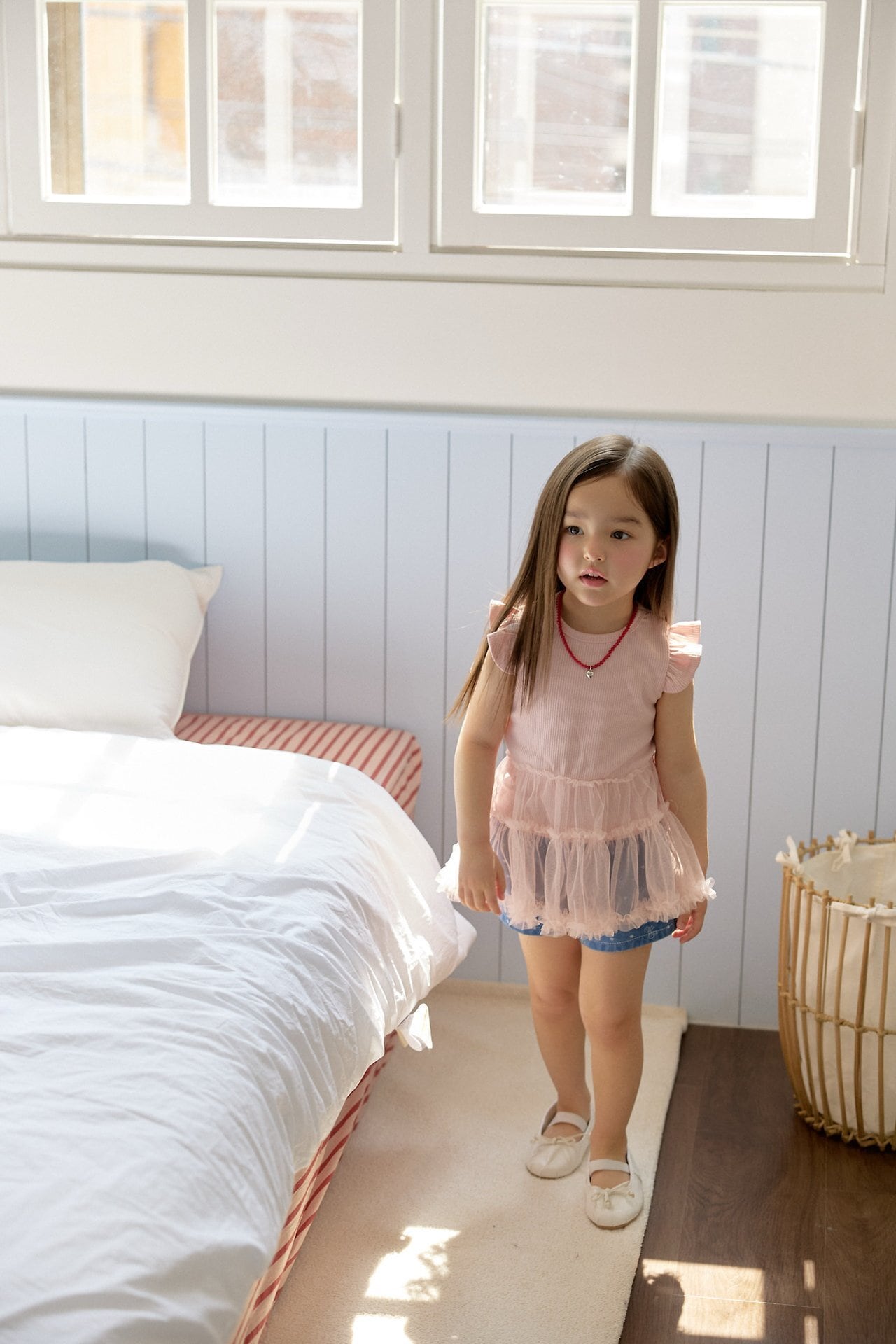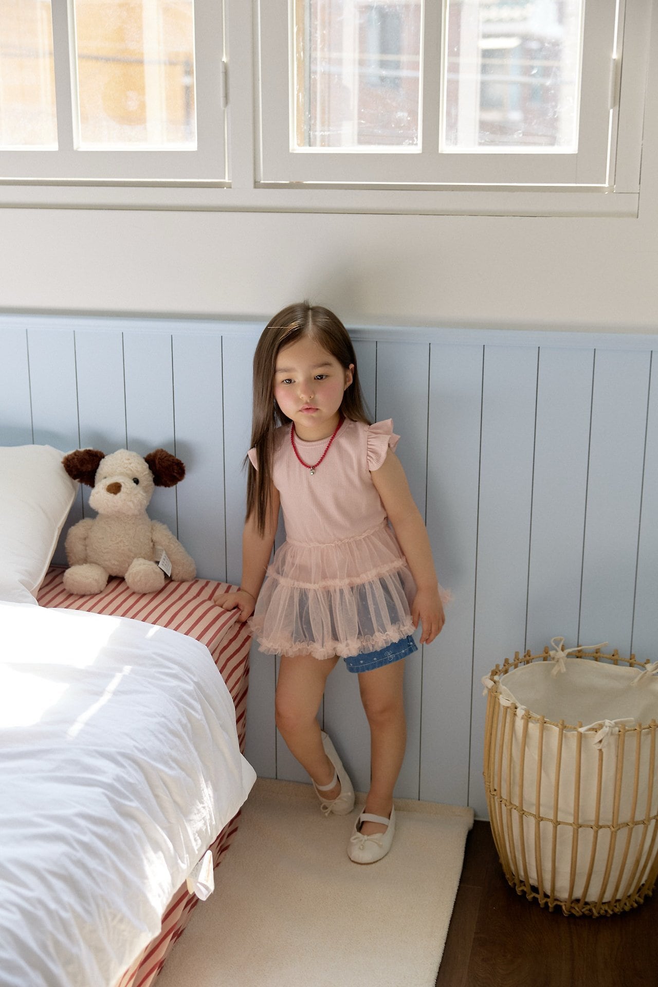 さらに裾には長めのチュールを重ねることで、動くたびにふわっと揺れる軽やかさをプラス。シンプルな中にも特別感のあるデザインで、一枚でコーディネートの主役になるアイテムです。