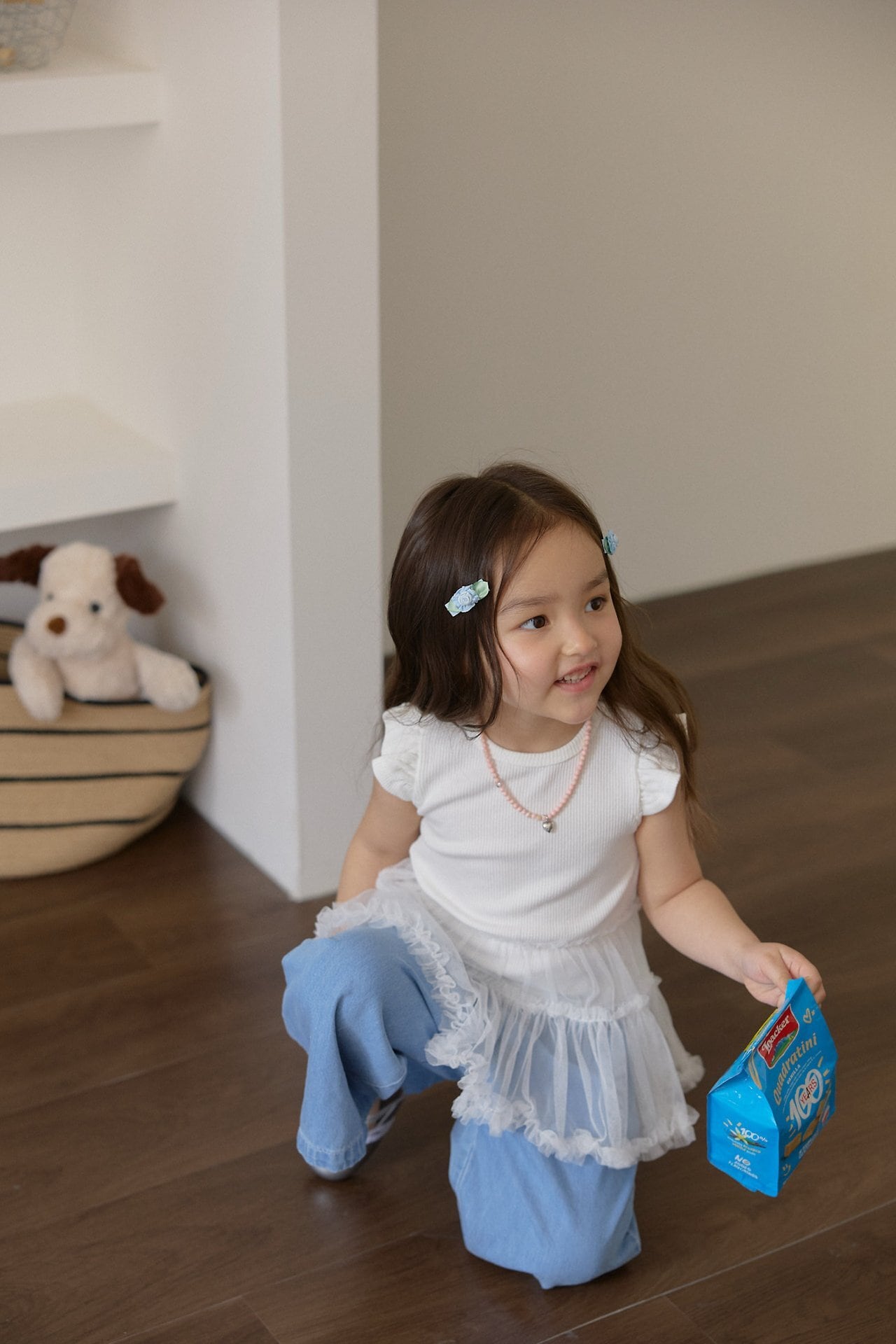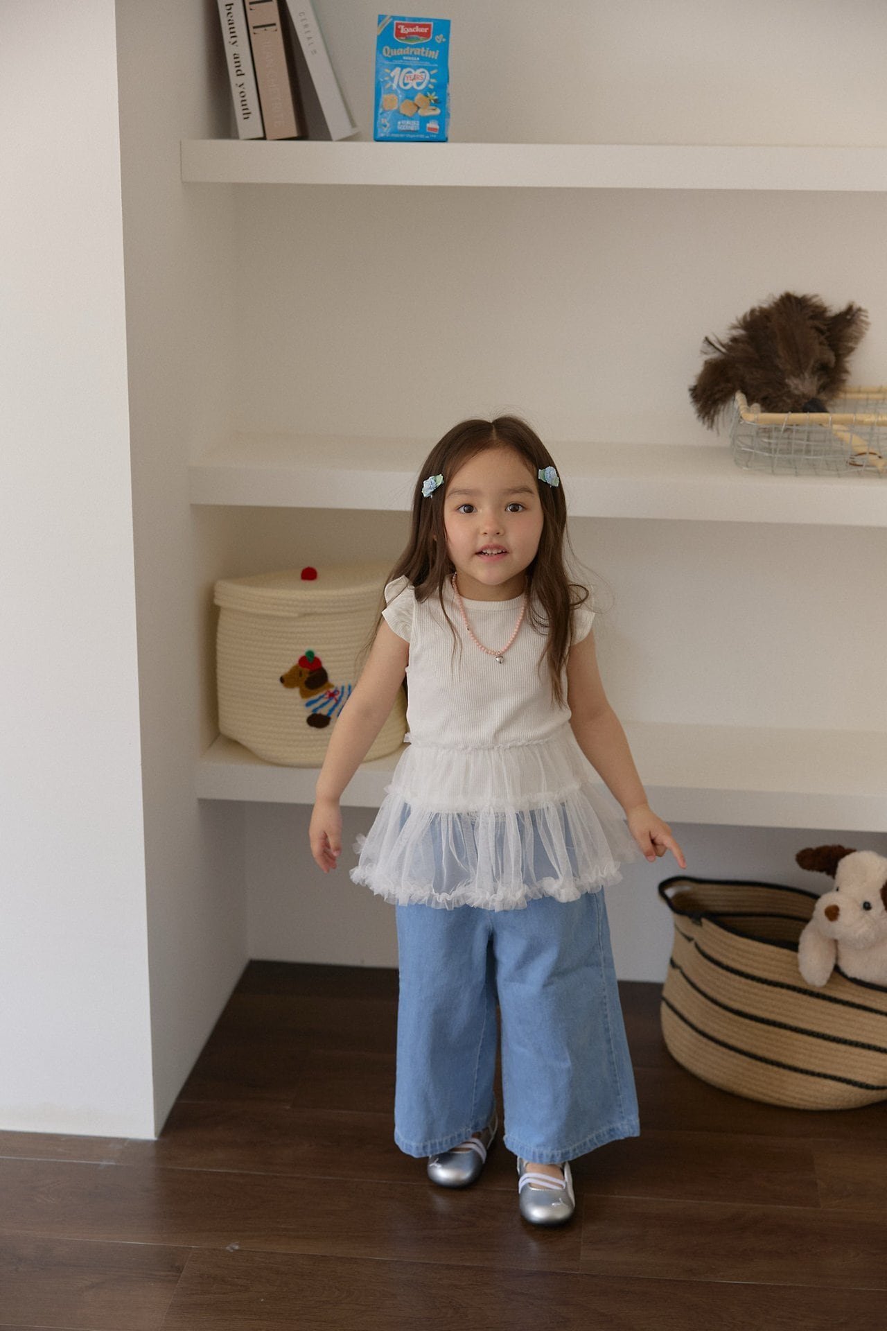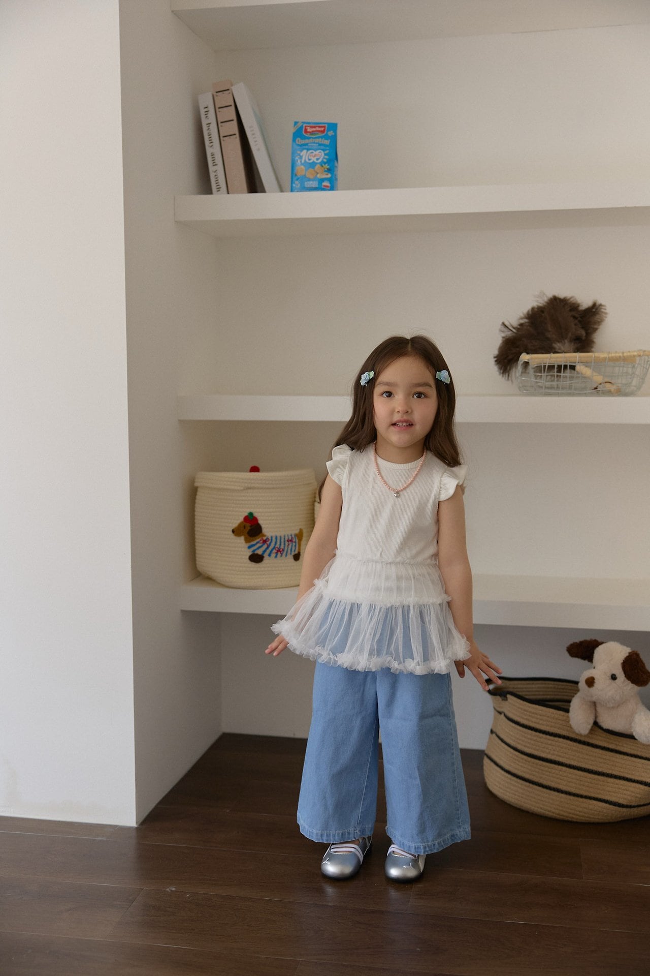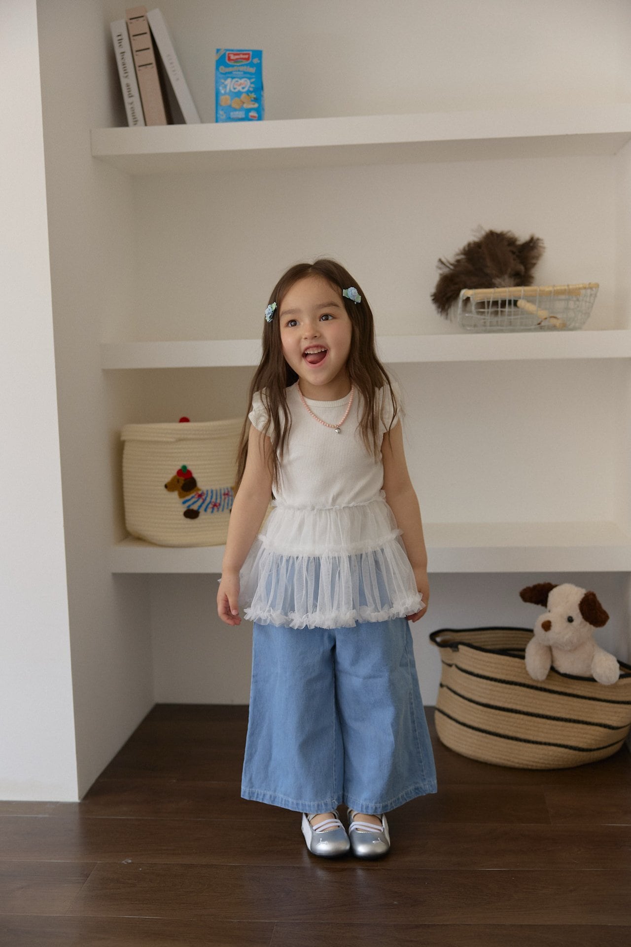 さらに裾には長めのチュールを重ねることで、動くたびにふわっと揺れる軽やかさをプラス。シンプルな中にも特別感のあるデザインで、一枚でコーディネートの主役になるアイテムです。