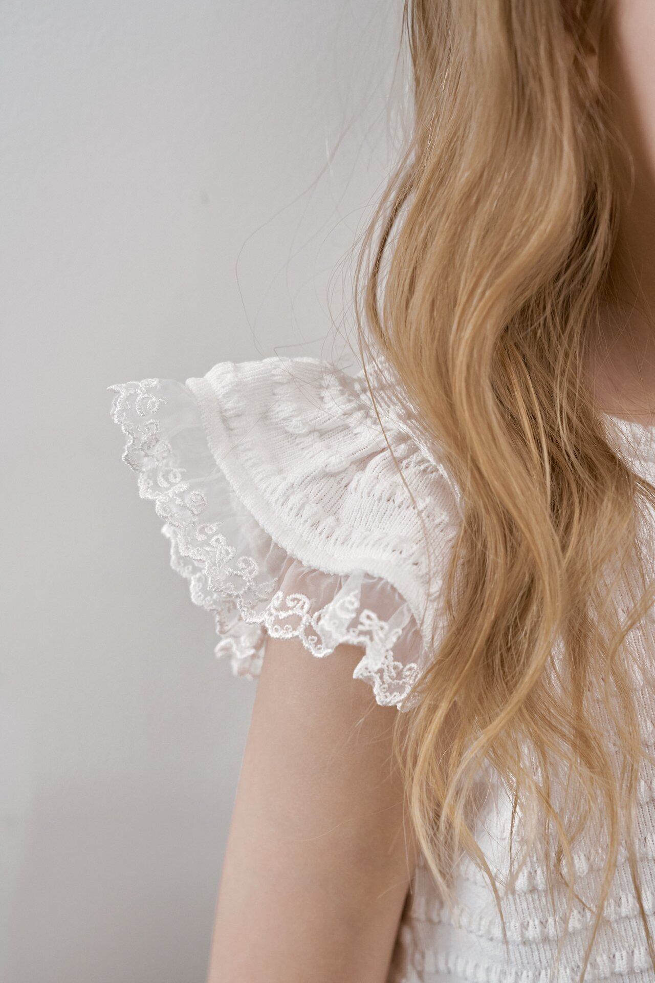 夏にぴったりの軽やかさと可愛らしさを兼ね備えた、ガーリーなトップスです。
