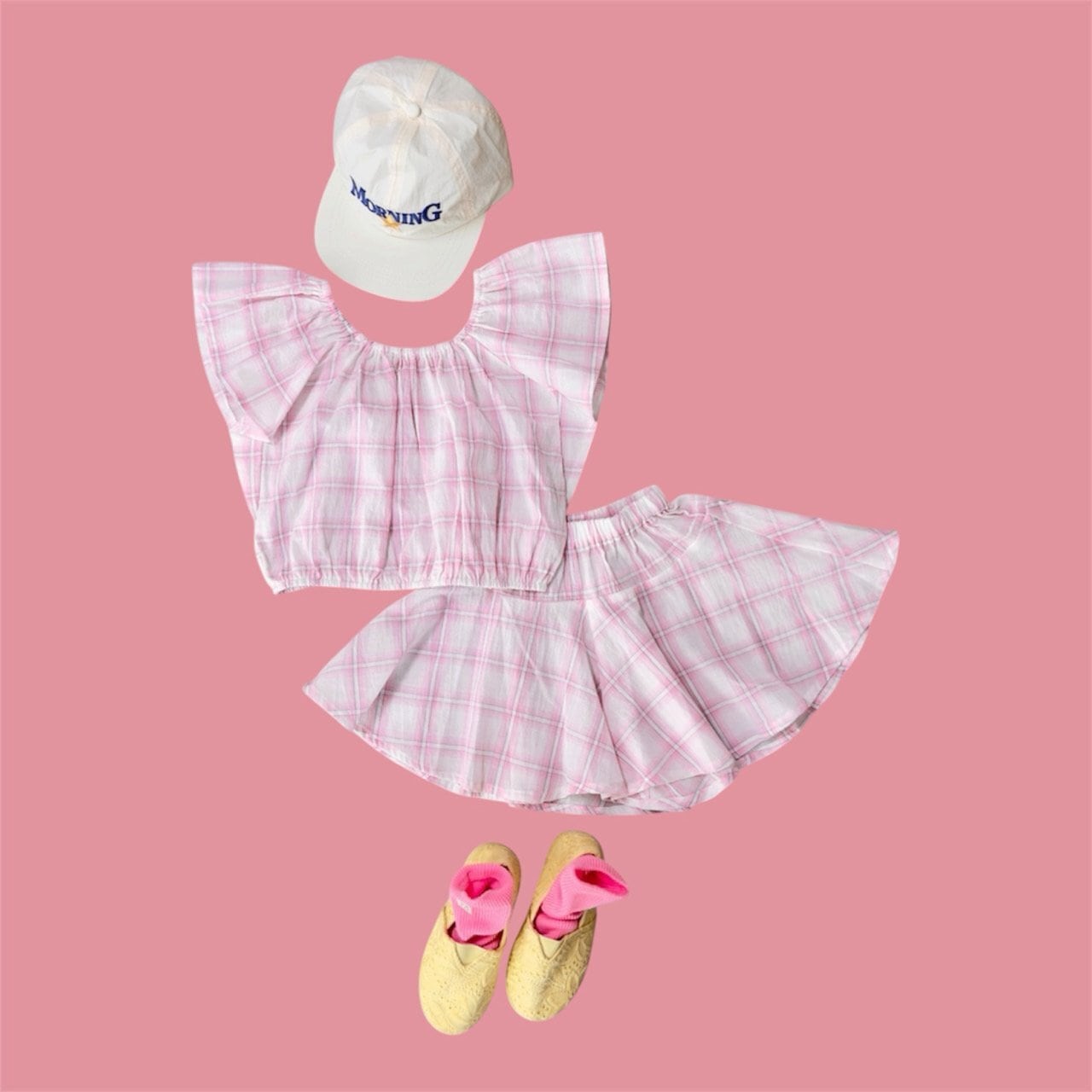 やさしく可愛らしい雰囲気が魅力のセットアップです。