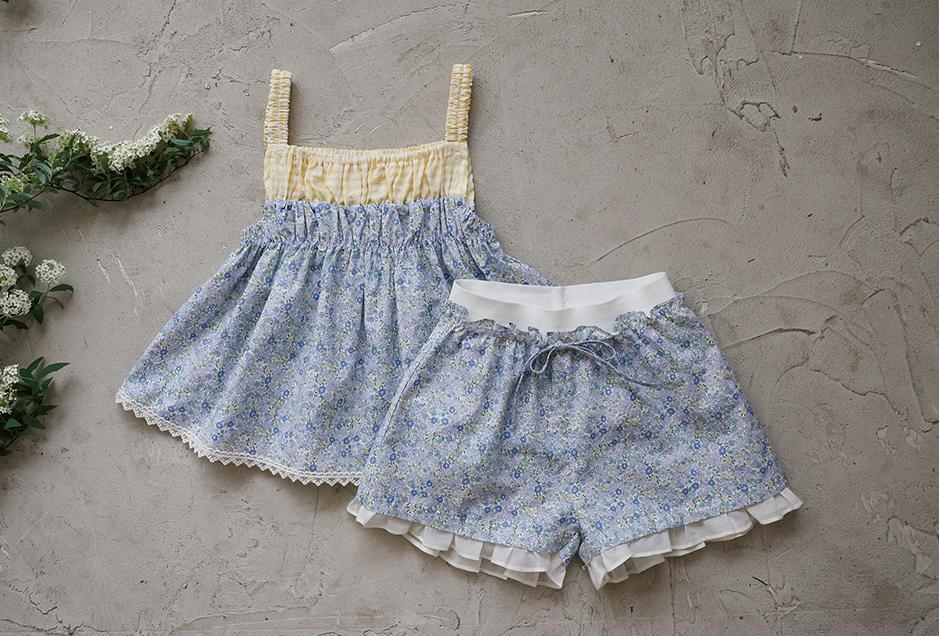 また、別売りでご用意している同素材のトップスと合わせたセットアップスタイルもおすすめです。統一感のあるコーディネートで、より一層おしゃれで可愛らしい印象をお楽しみいただけます。