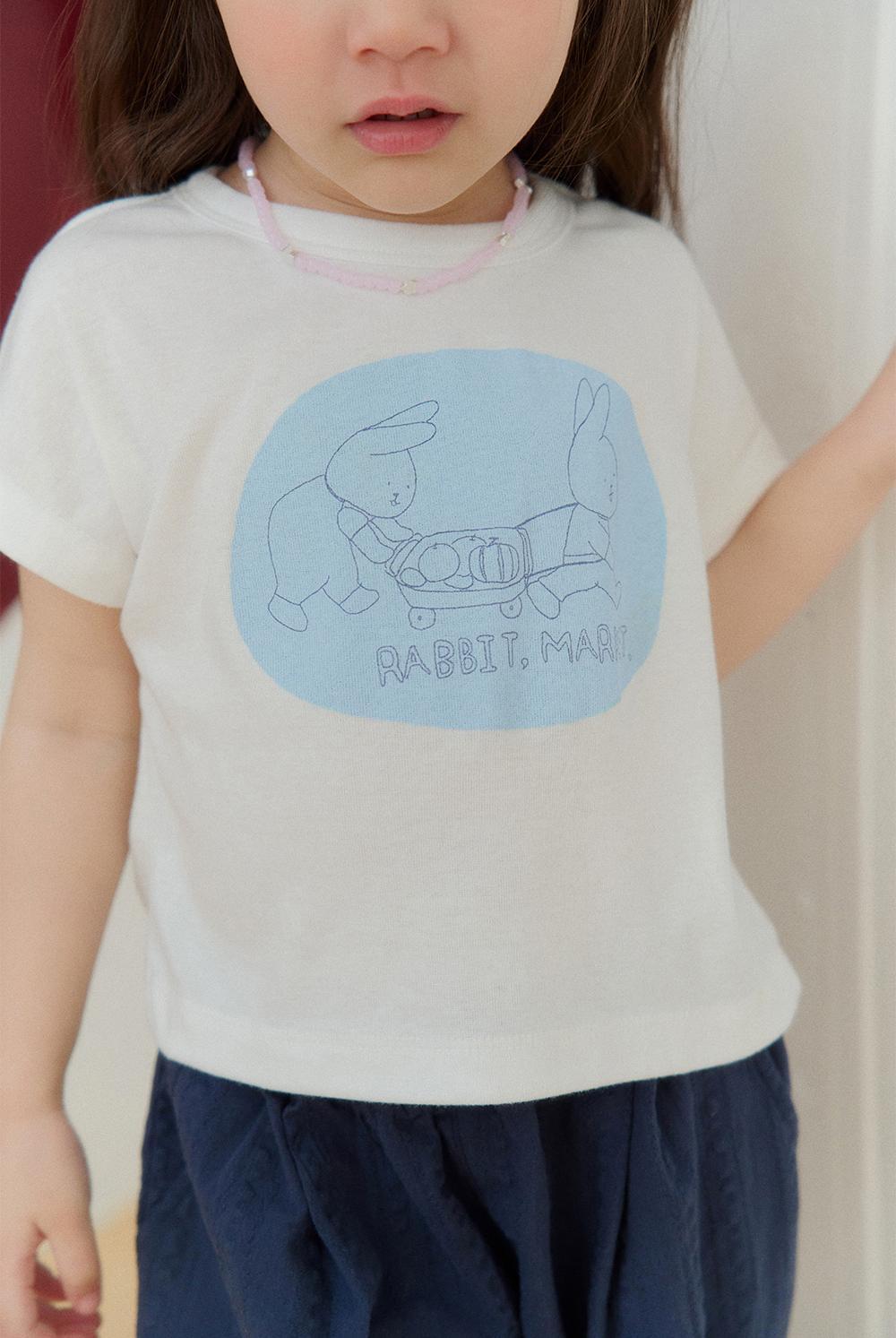 フロントには、アンバーならではのやさしい感性を感じさせるプリントをあしらいました。前面に大きく描かれたうさぎのモチーフが、可愛らしく印象的なアクセントとなっています。