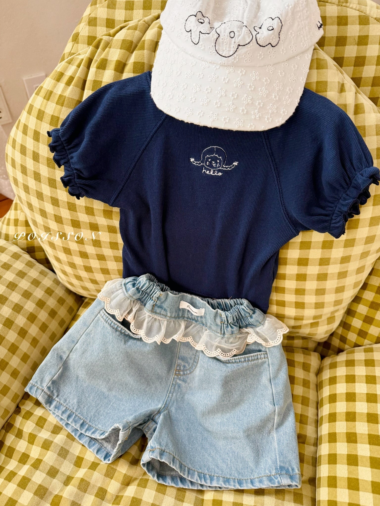 夏にぴったりの、ガーリーな魅力をプラスしたデニムハーフパンツです。