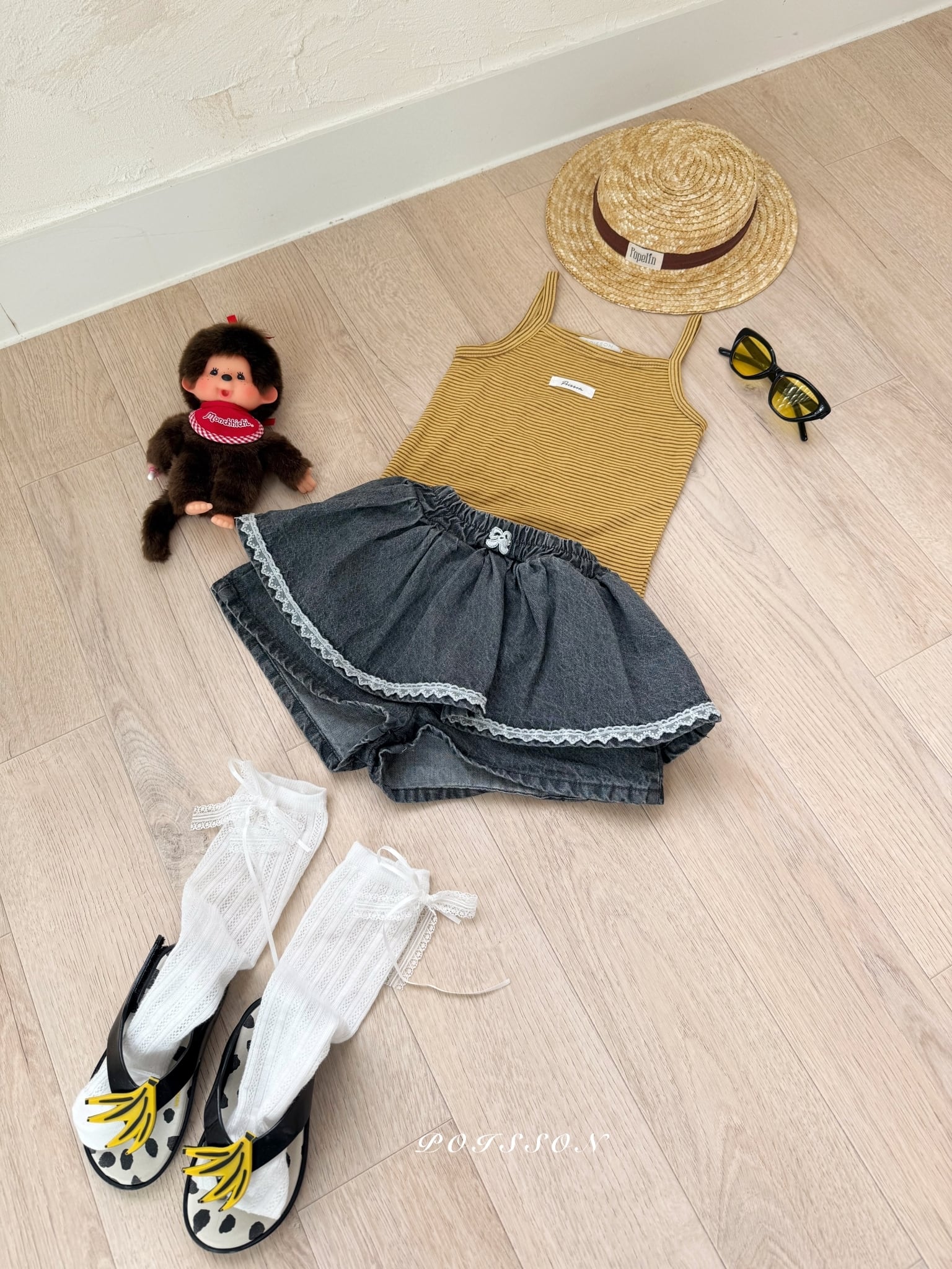 «予約»«ジュニアサイズあり»«poisson» ブラックデニムスカートパンツ