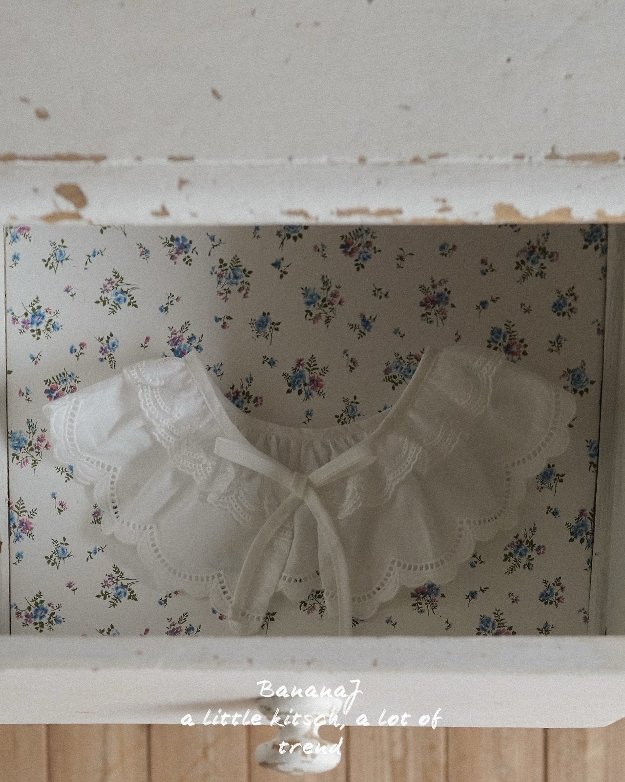 愛らしいコットンレースが重なり合う華やかなケープです。