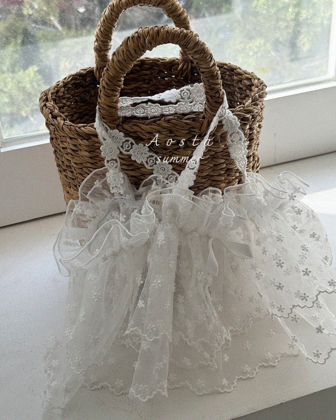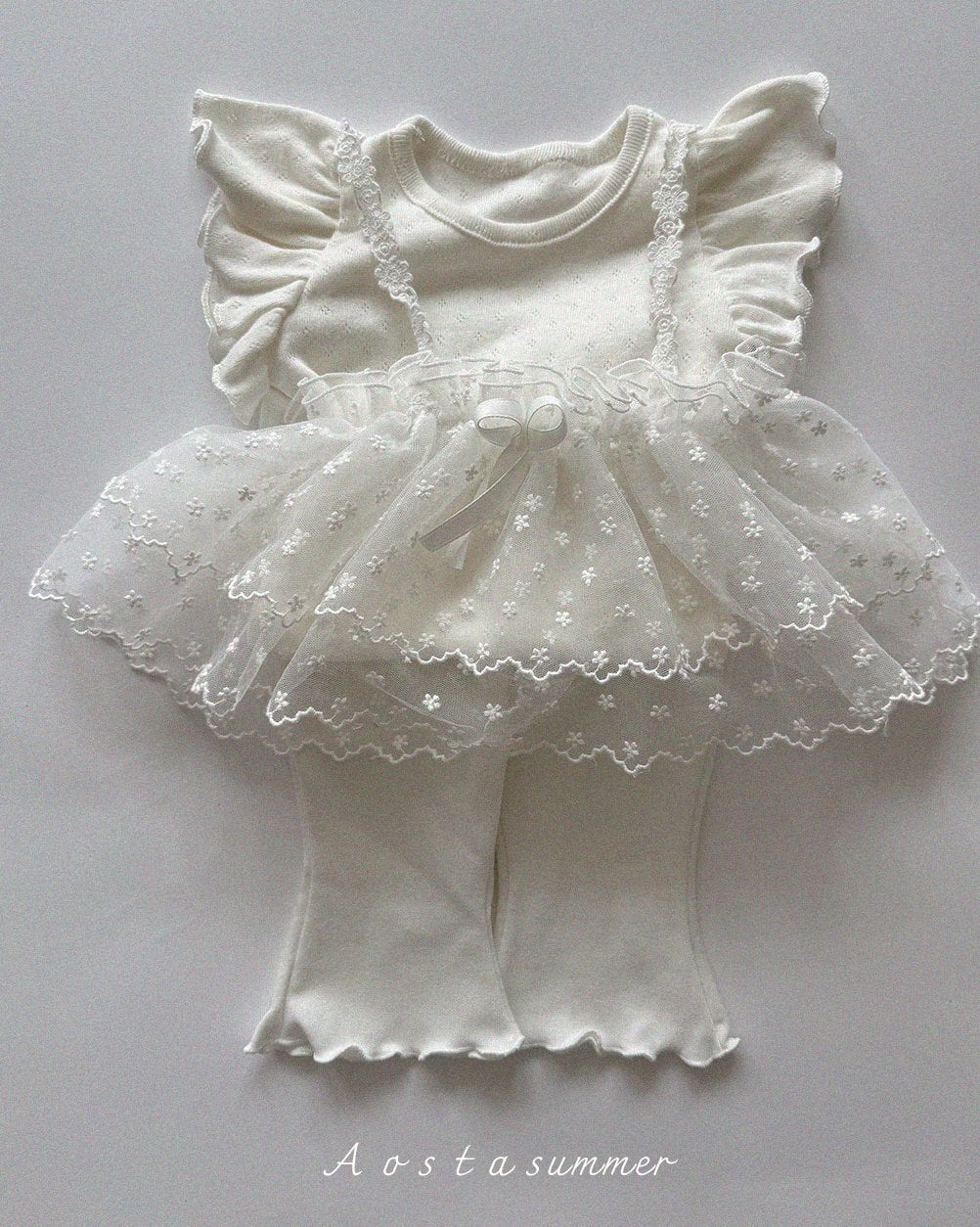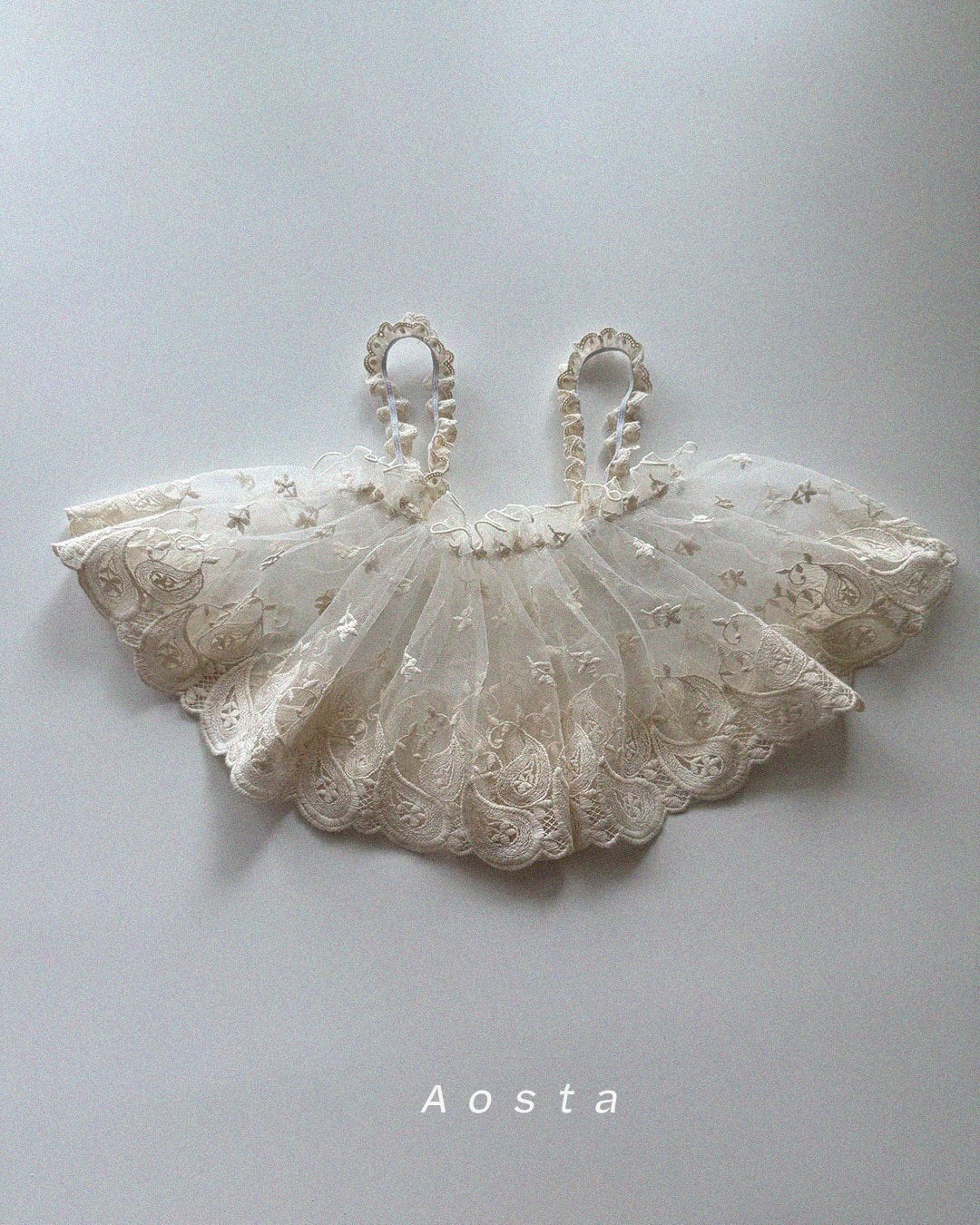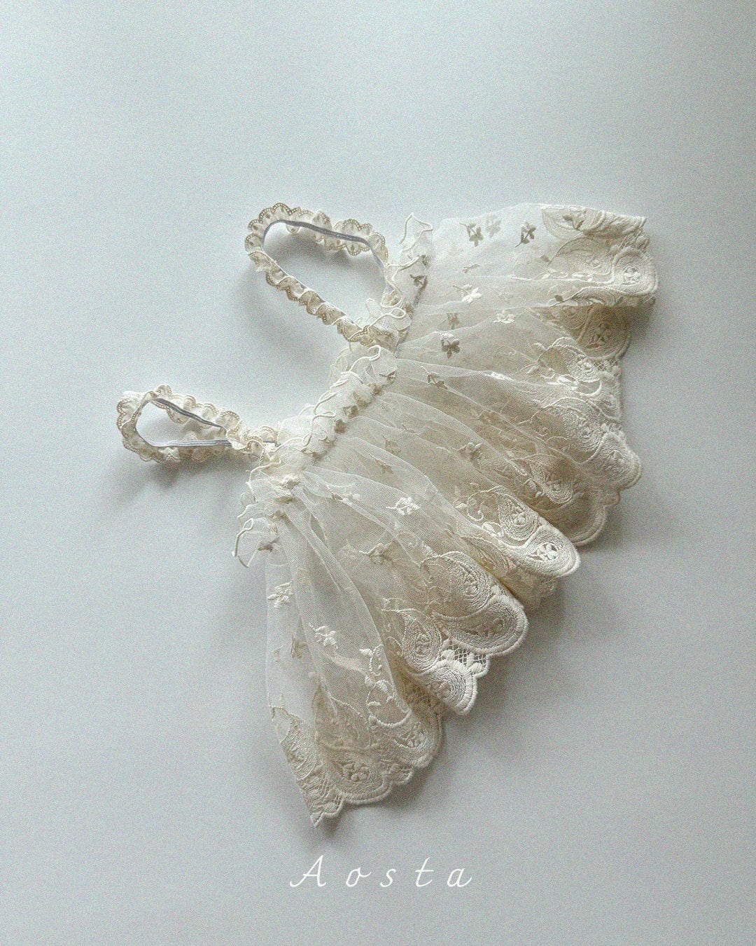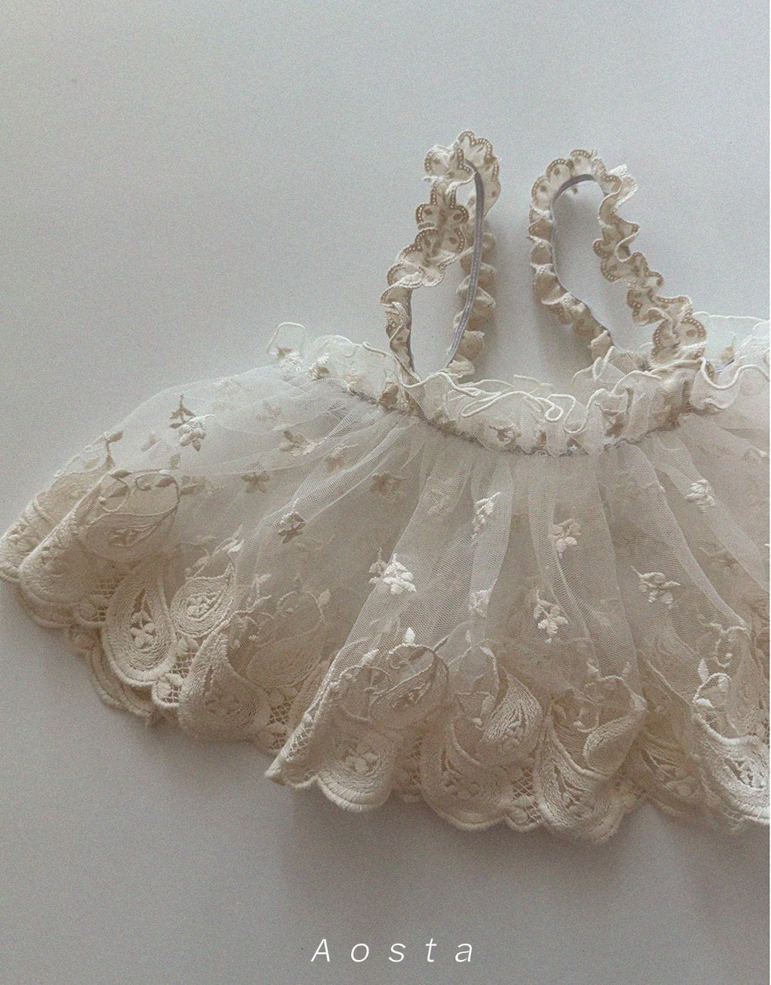 肩紐レースやフリルディテールなど、細かなデザインにもこだわった一枚。