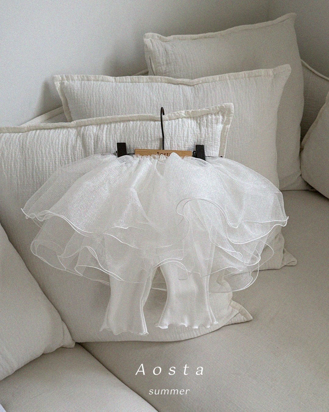 シンプルなパンツやレギンスの上に重ねるだけで、ぐっと華やかでおしゃれなスタイルに。