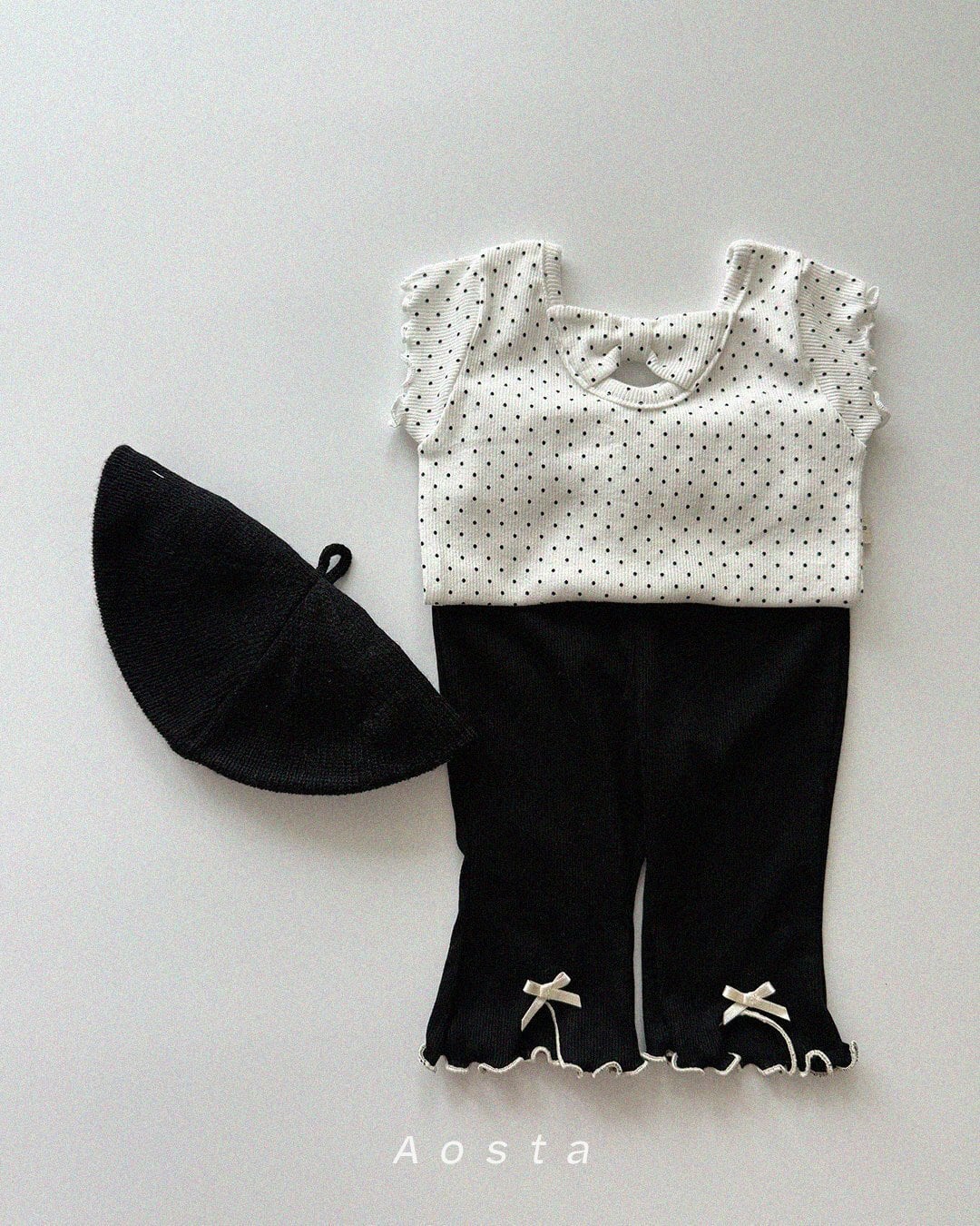 リボンデザインがアクセントになり、前後どちらでも着用できるのも嬉しいポイント。着る向きによって異なる雰囲気を楽しめる、着回し力の高い一枚です。