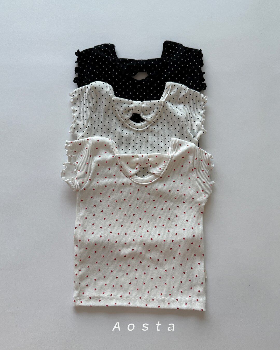 アイドット・ブラックドット・レッドハートの3種類のカラー展開が可愛らしいリボンブラウスです。