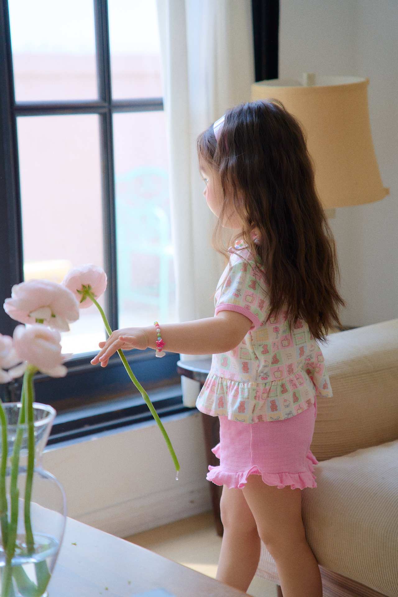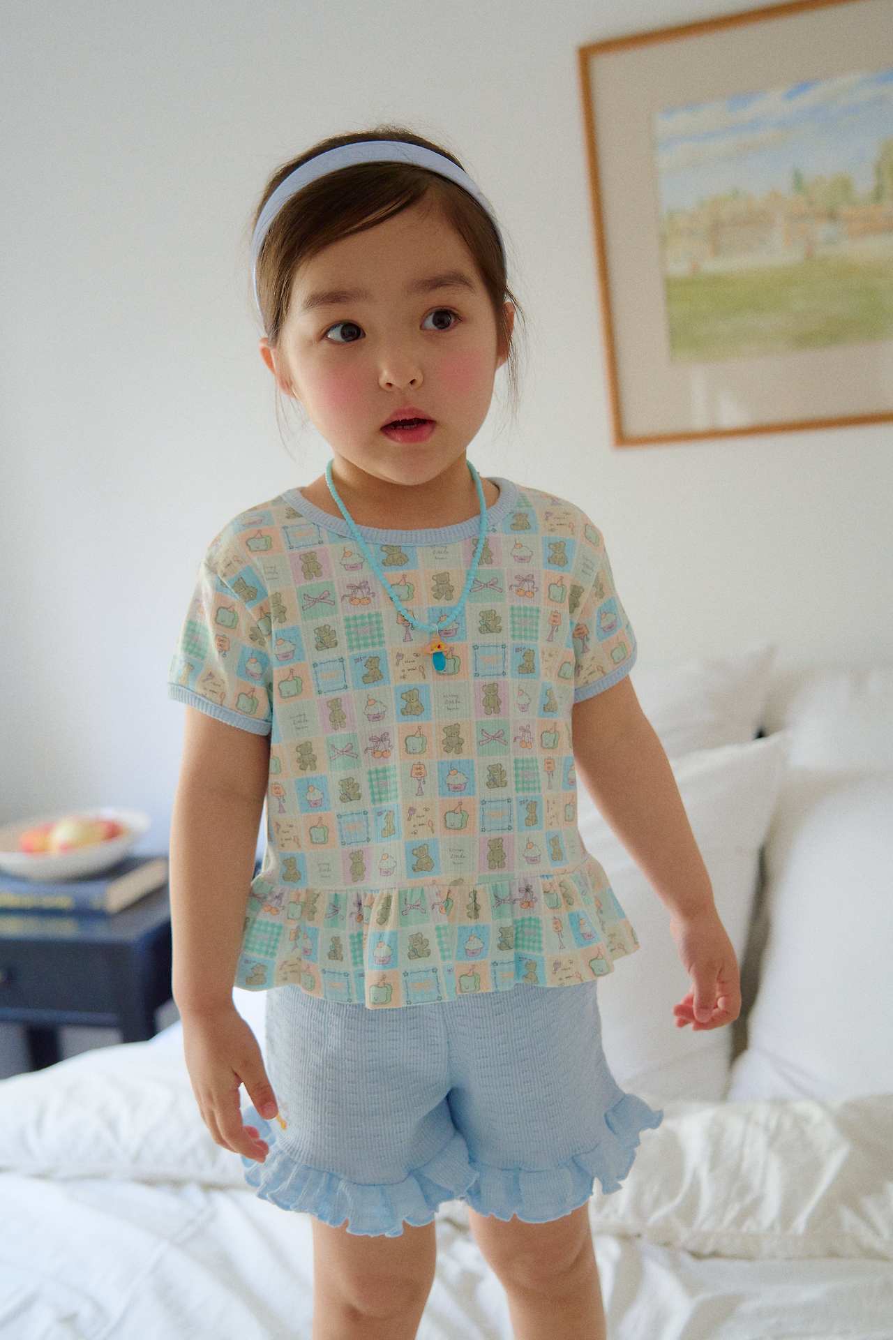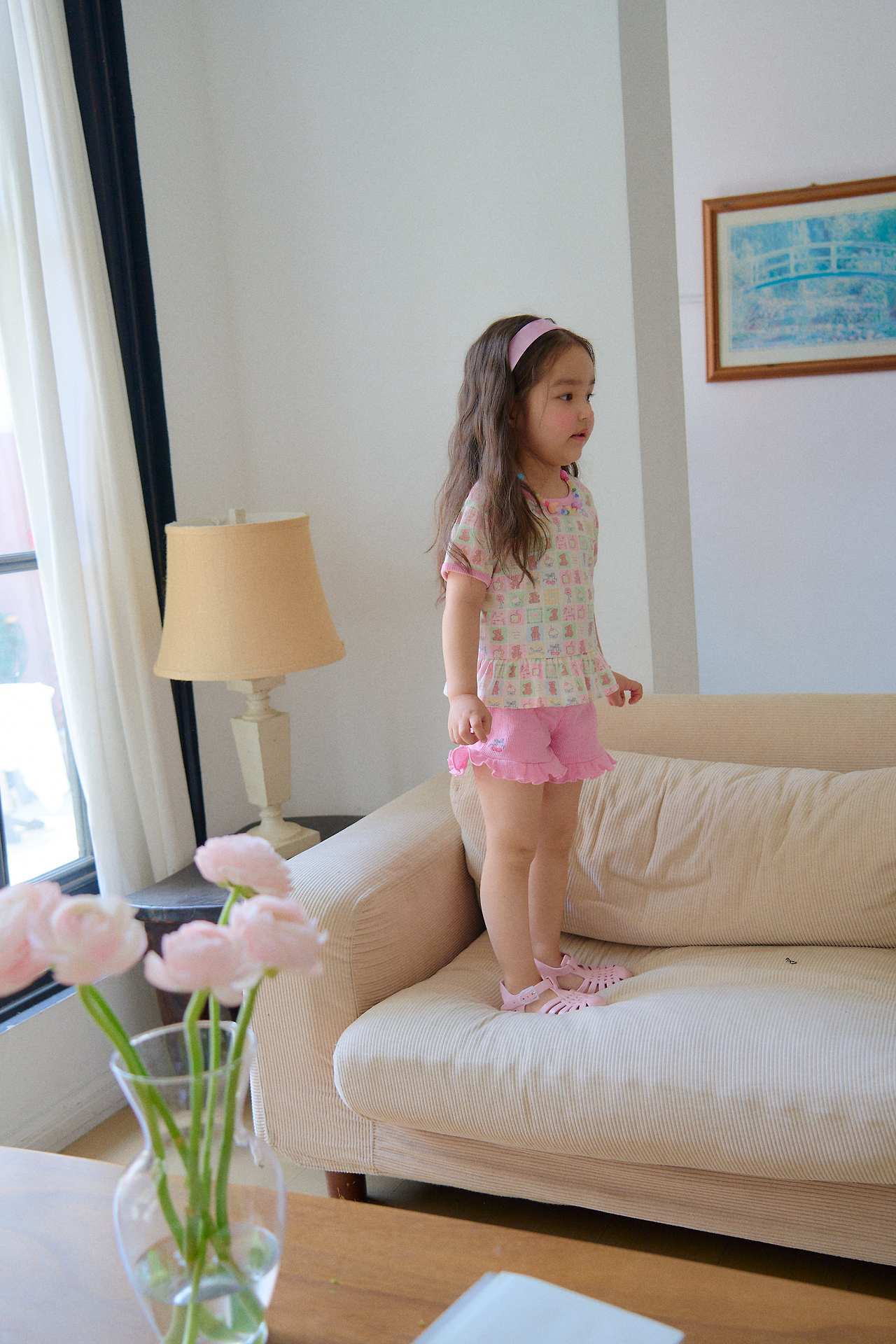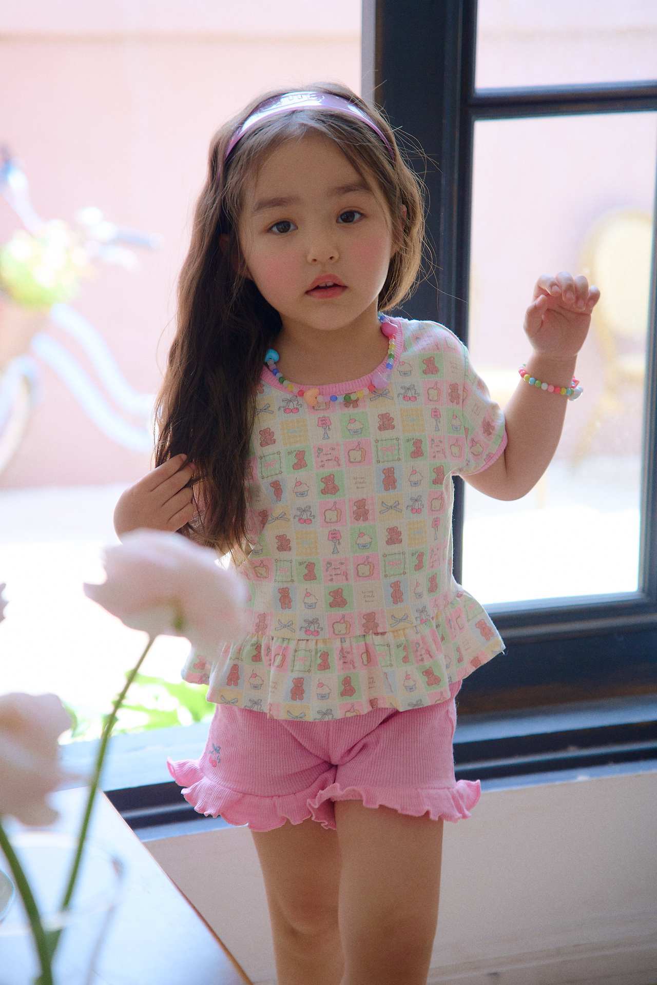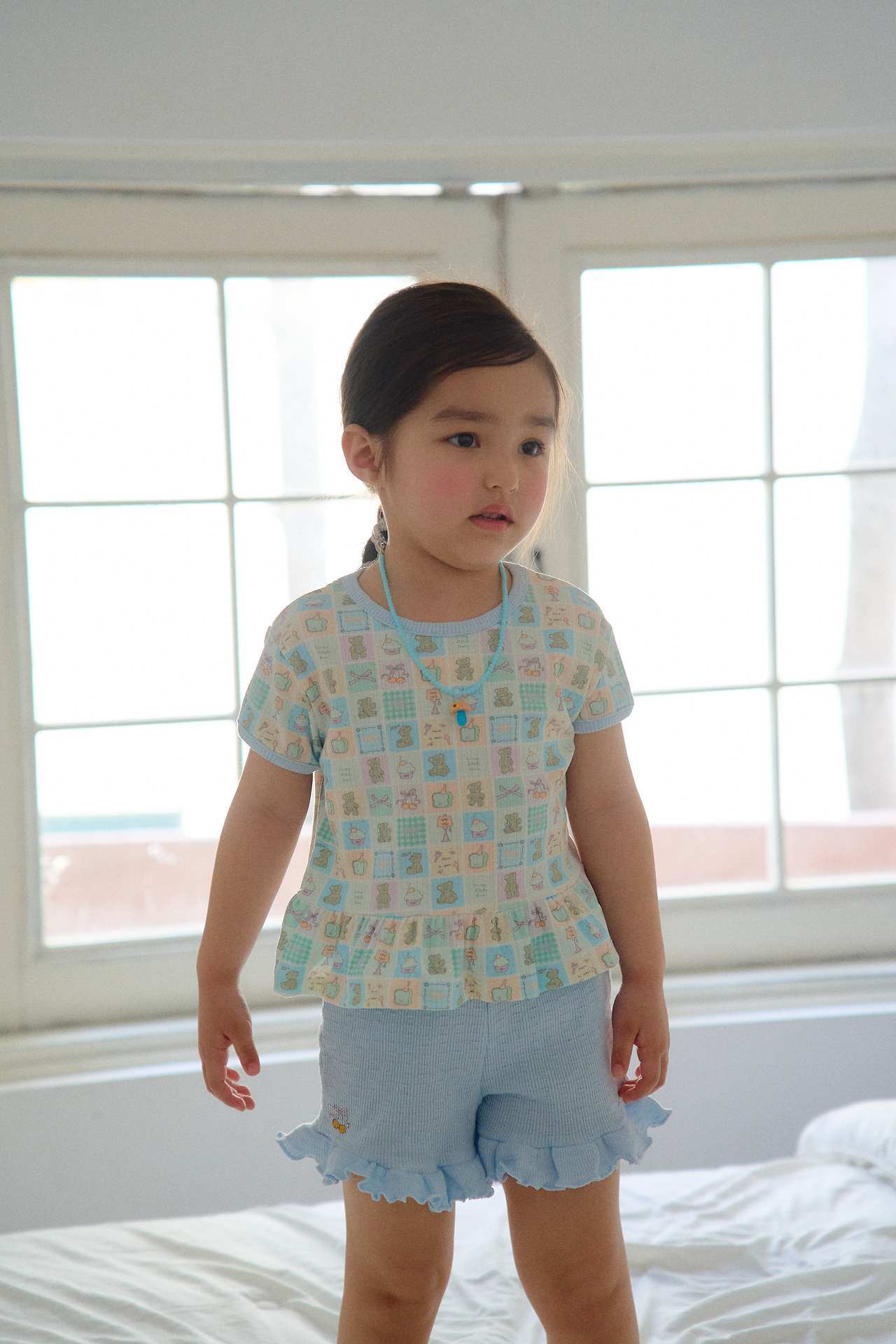 裾にはフリルディテールをあしらい、脚まわりをより可愛らしく見せてくれる、愛らしい雰囲気に仕上げました。