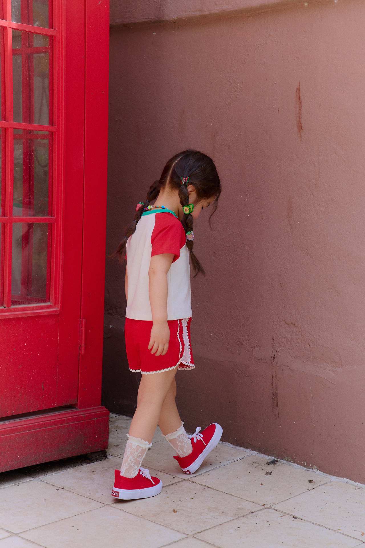 サイドラインにはレースディテールをあしらい、シンプルな中に愛らしさをプラスしました。