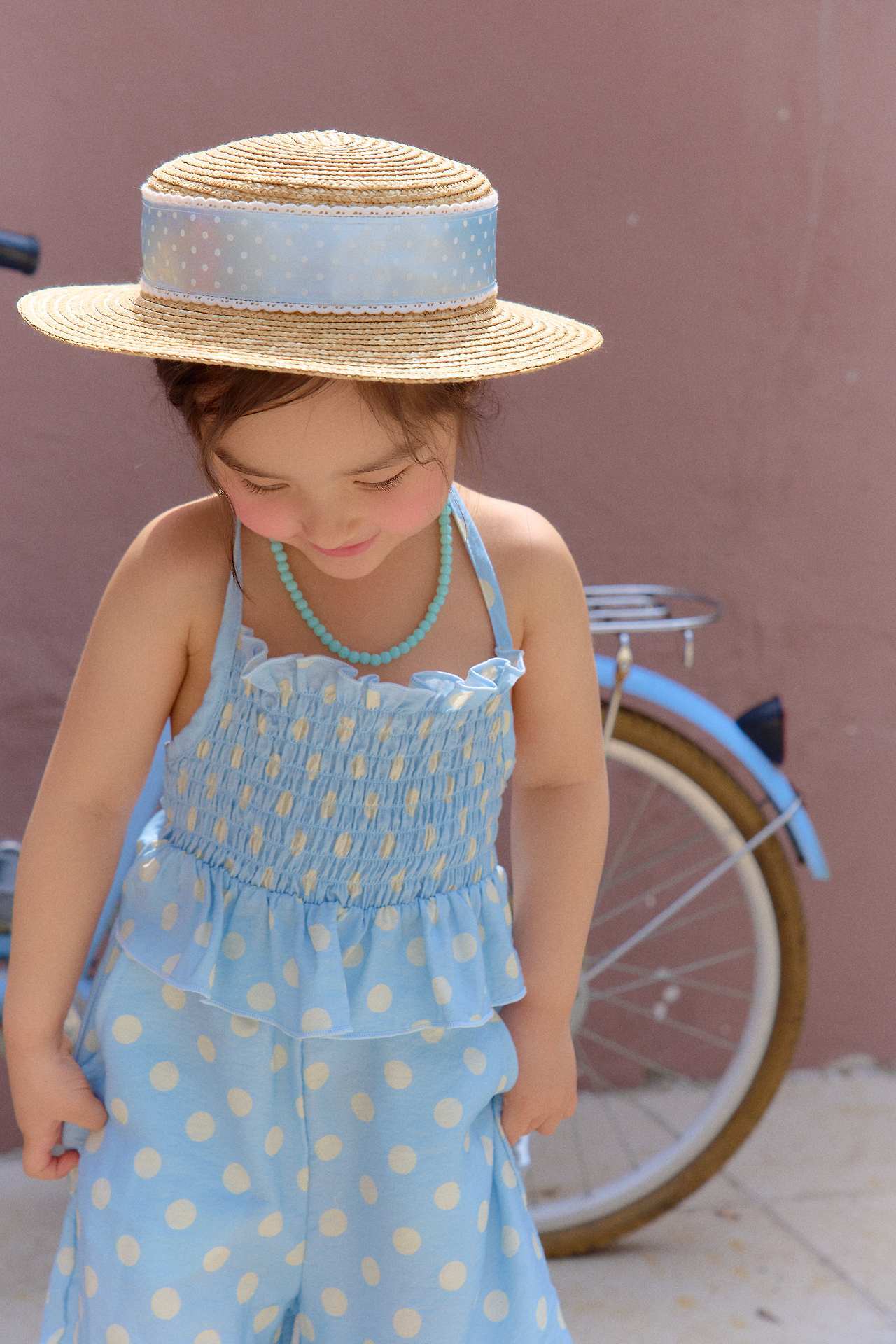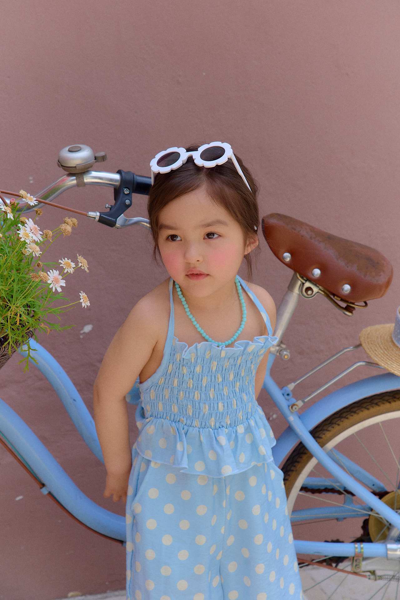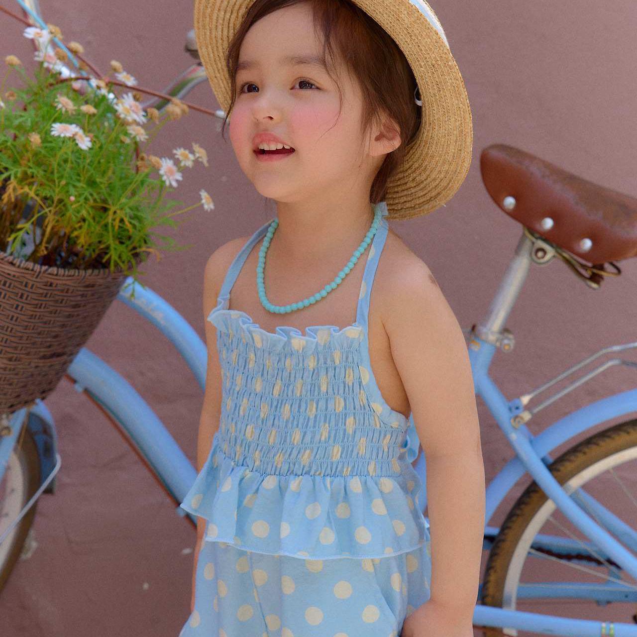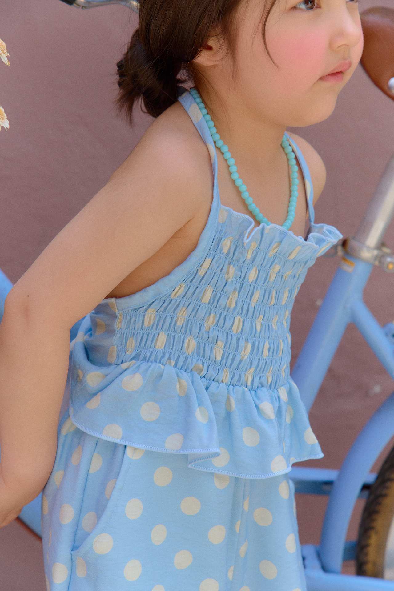 大きなホワイトドットをあしらったブルーカラーは、見た目にも涼しげで爽やかな印象を与えます。
