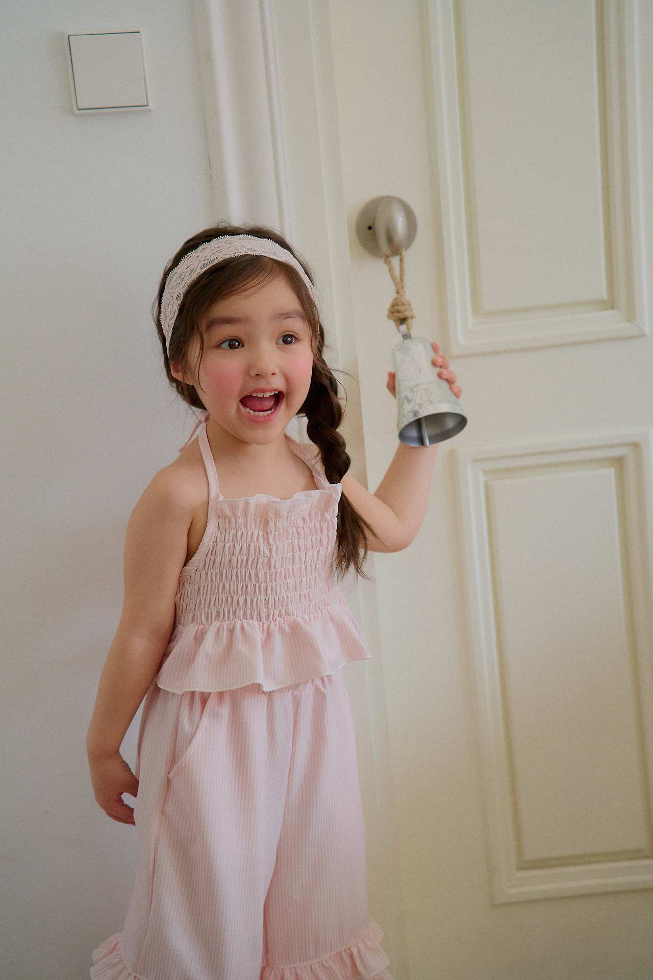 スモッキングディテールによる自然なシャーリングと、フリル仕上げがさりげなく可憐なムードを引き立てます。