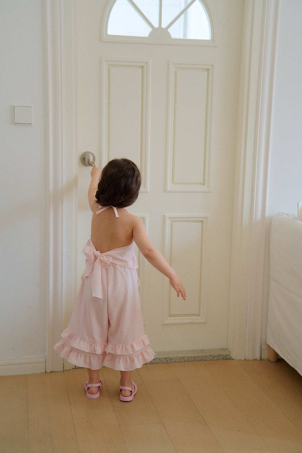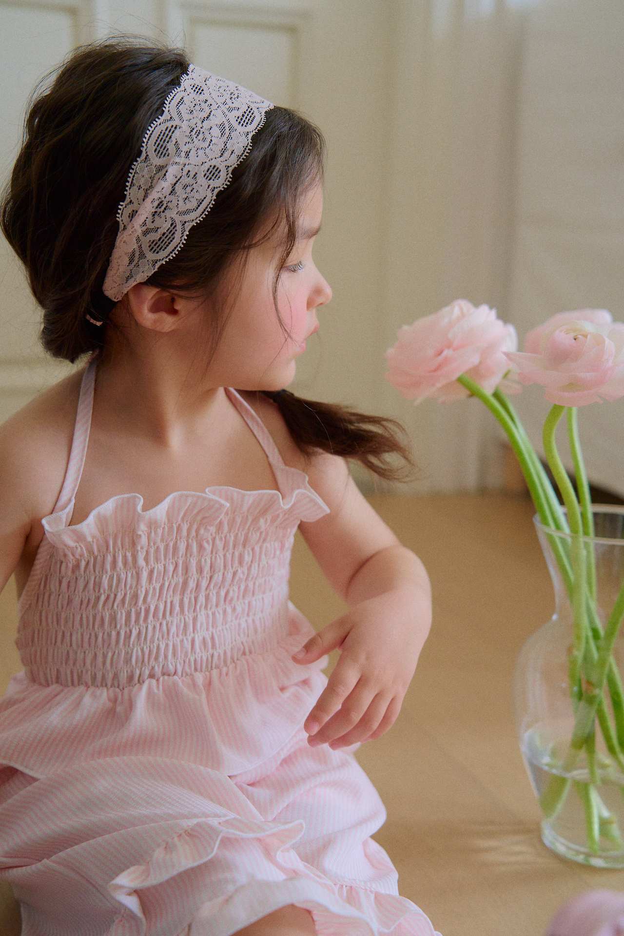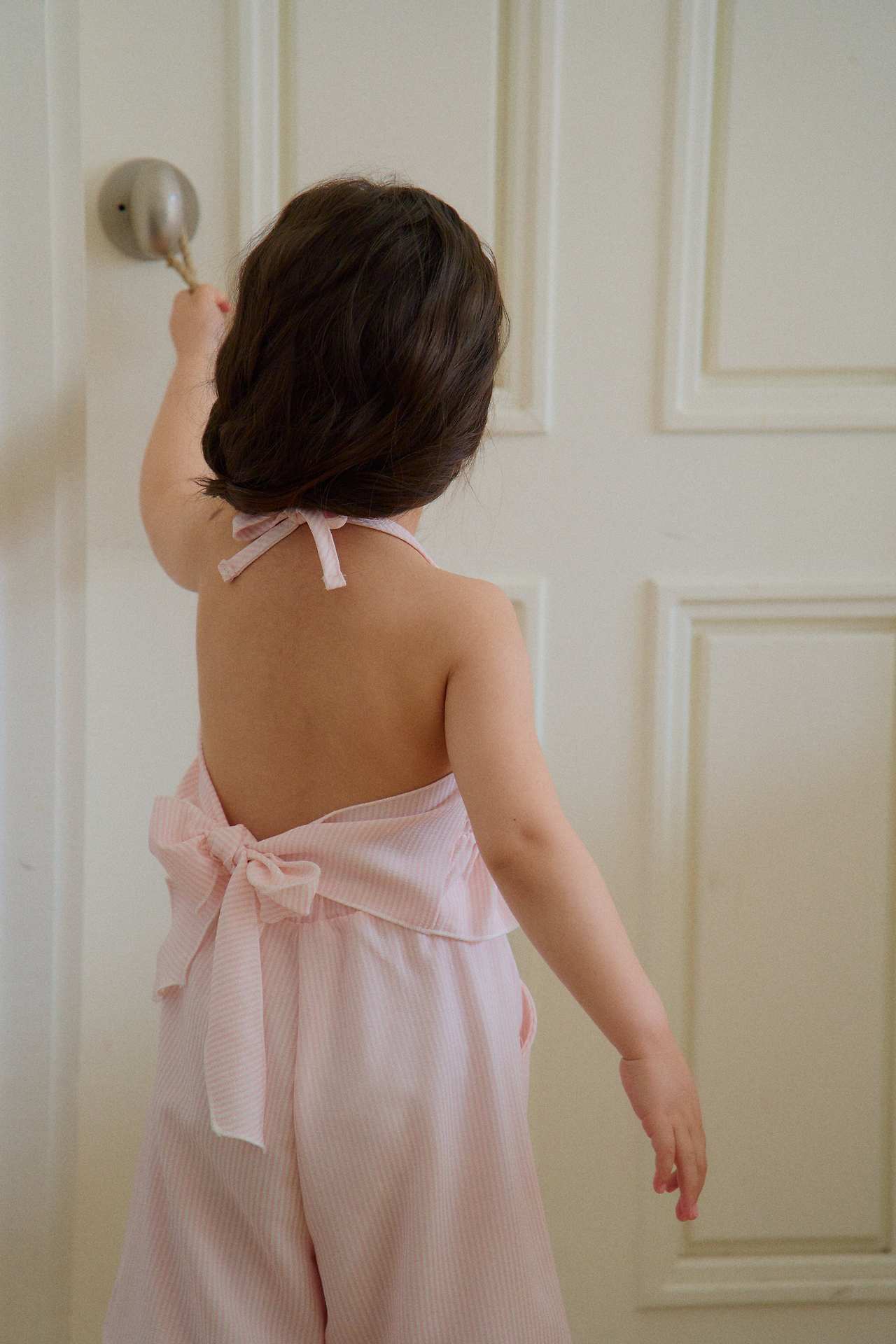 ピンクとアイボリーのストライプは、やさしく愛らしい雰囲気を演出。