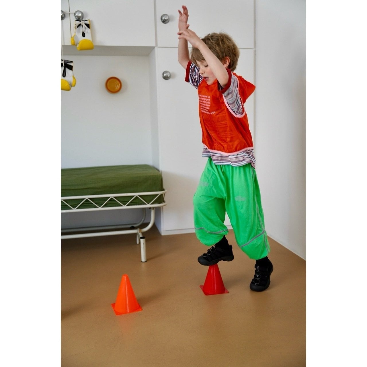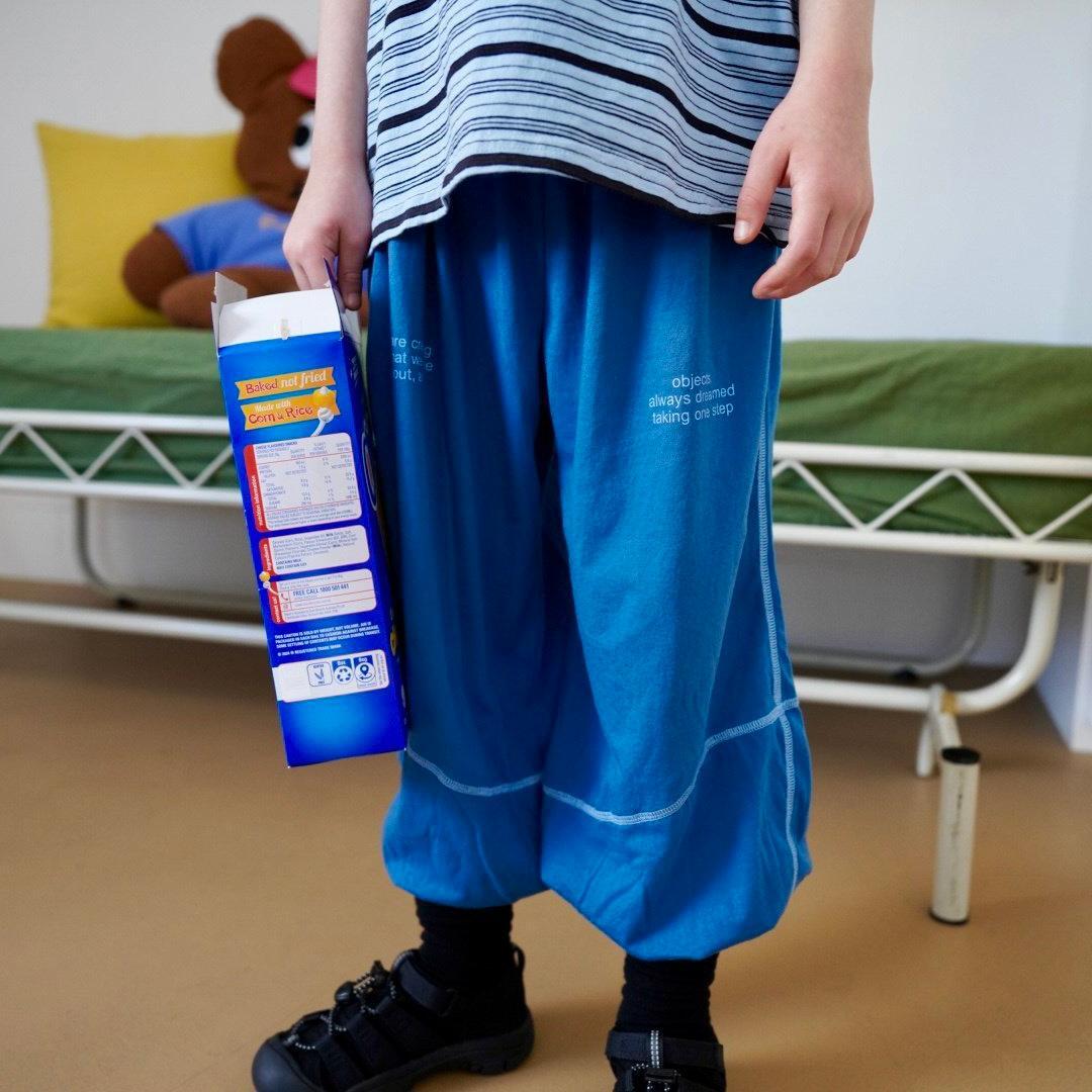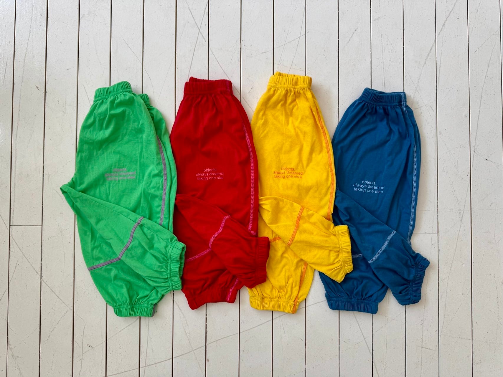 裾に向かってすっきりとしたジョガーシルエットで動きやすく、元気に遊ぶ日にもぴったり。男の子・女の子どちらにも似合うユニセックスなデザインで、デイリー使いからお出かけまで幅広く活躍します。