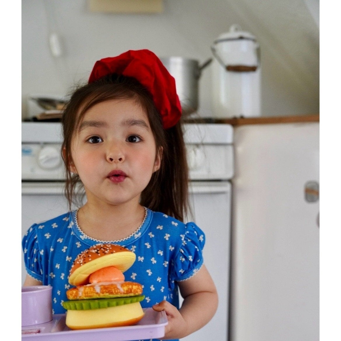 ふんわりとしたパフスリーブに加えネックラインと袖には繊細なレースをあしらい上品で華やかな印象に仕上げました。裾のフリルが動きに合わせて揺れ軽やかで愛らしいシルエットを演出します。