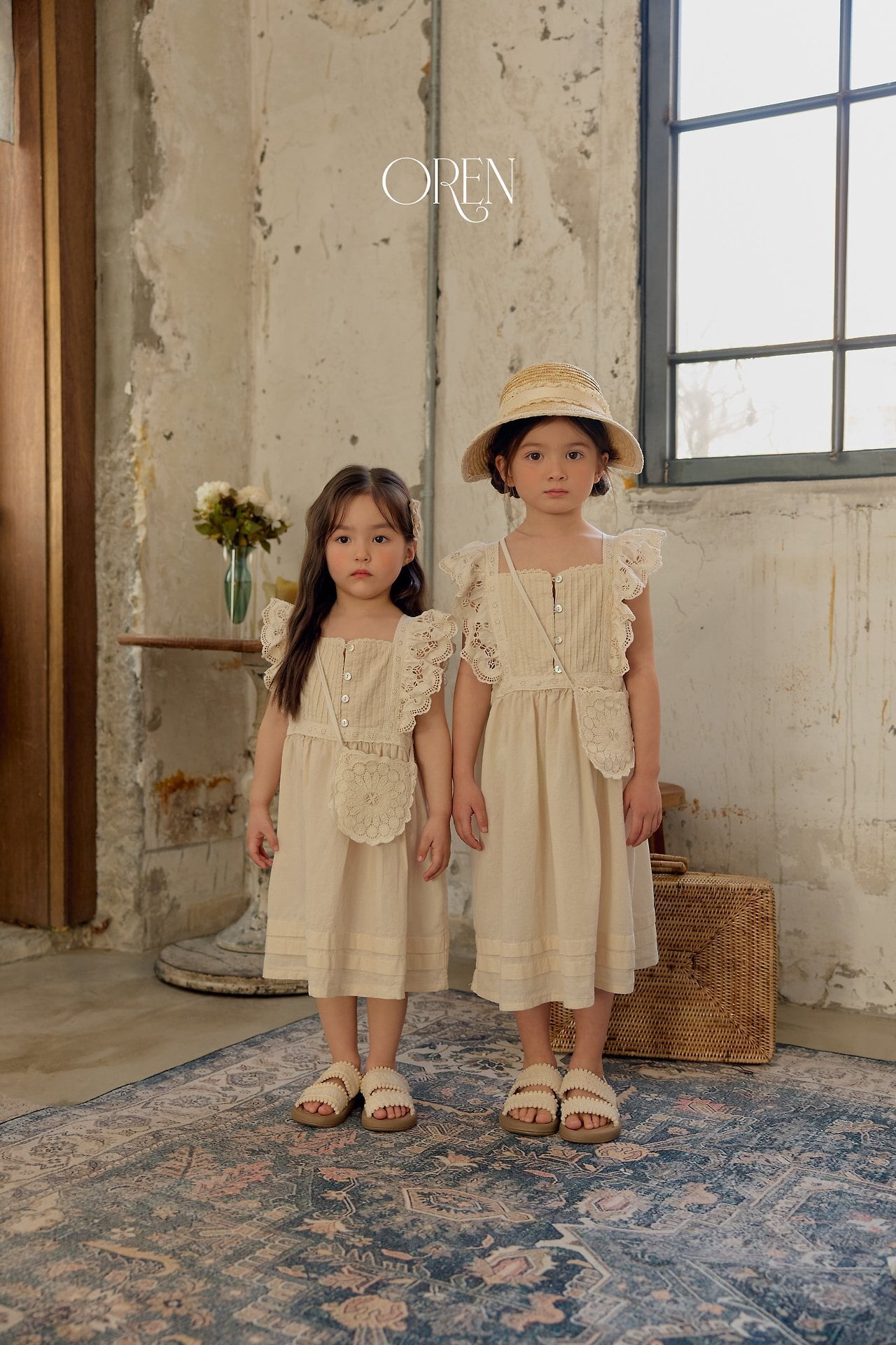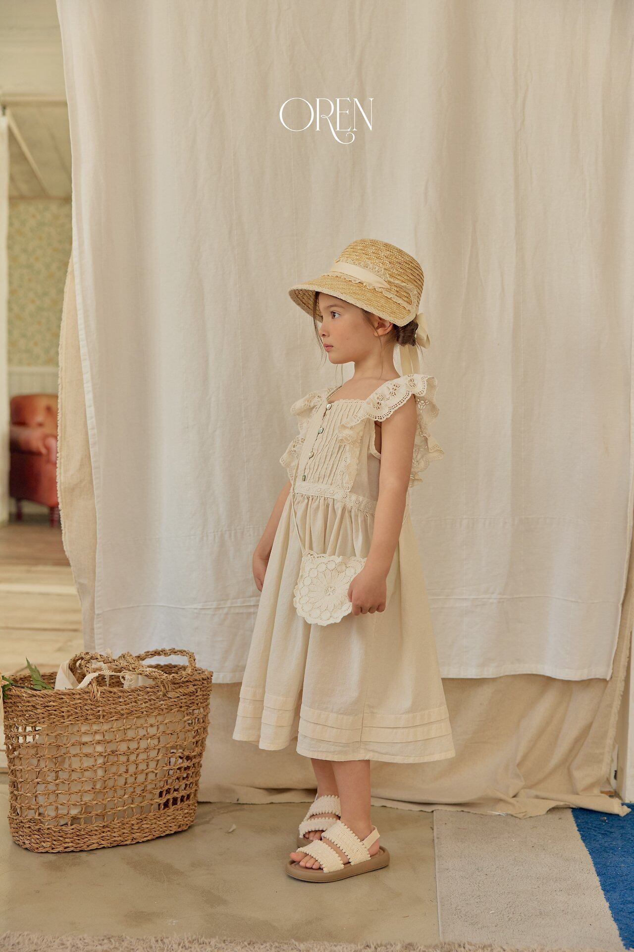 軽やかなコットン素材にたっぷりとあしらわれたレースフリルが動きに合わせてやさしく揺れ愛らしさと優雅さを引き立てます。