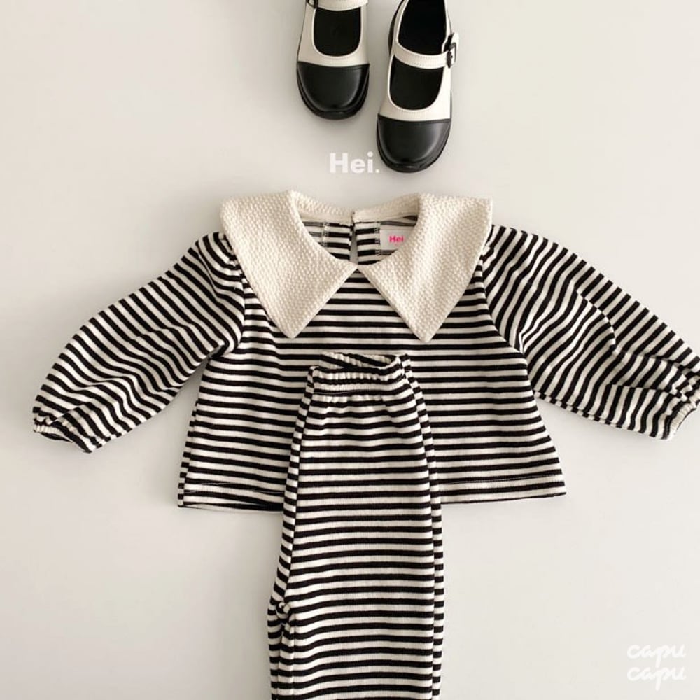 ボーダー柄と大きめの襟がheiらしくやわらかな着心地とゆったりシルエット