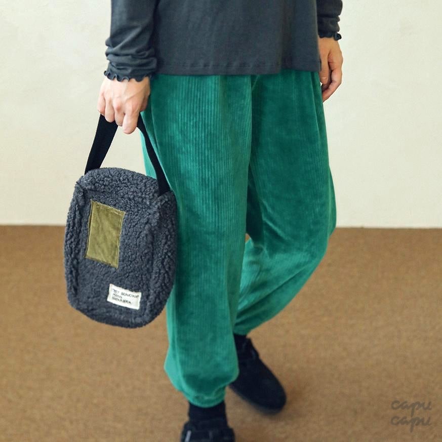 ベロアコーデュロイ素材のやわらかい質感で着心地がよく、立体感のあるデザインが上品な雰囲気です。