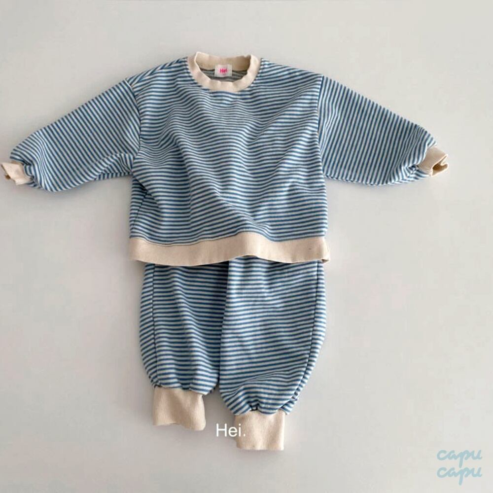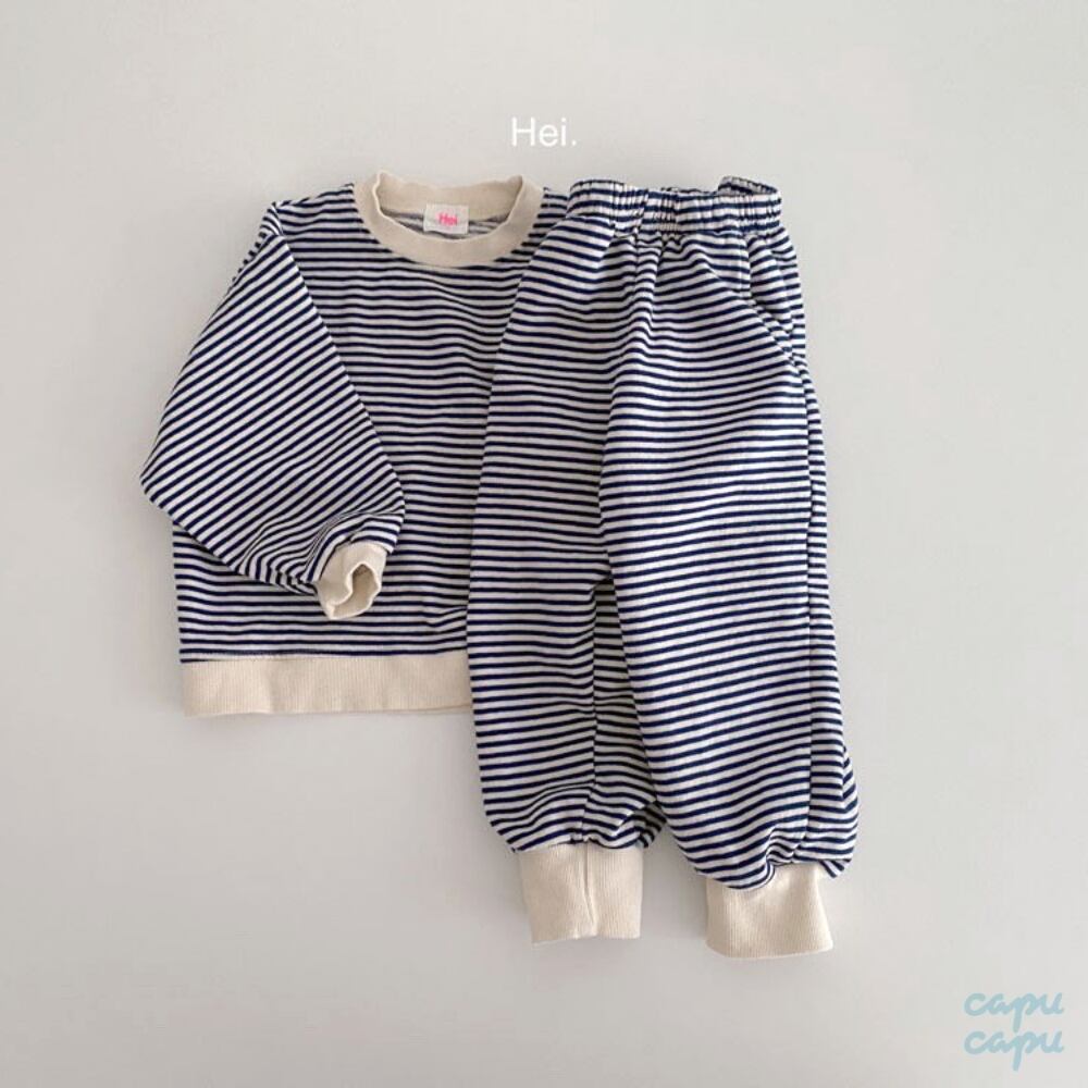 ボーダーの配色がheiらしくやわらかな着心地とゆったりシルエットでおうちで過ごすリラックスタイムにもおすすめです。