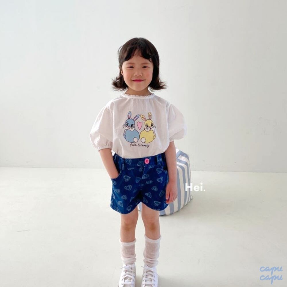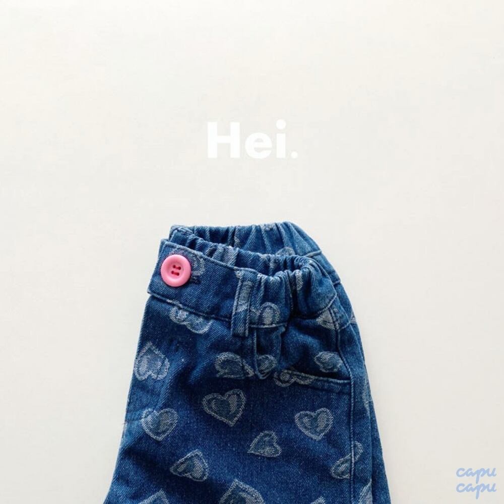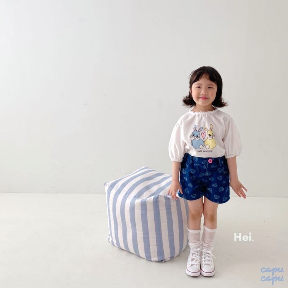 ハート柄とピンクボタンがカジュアルな印象のデニムショートパンツ