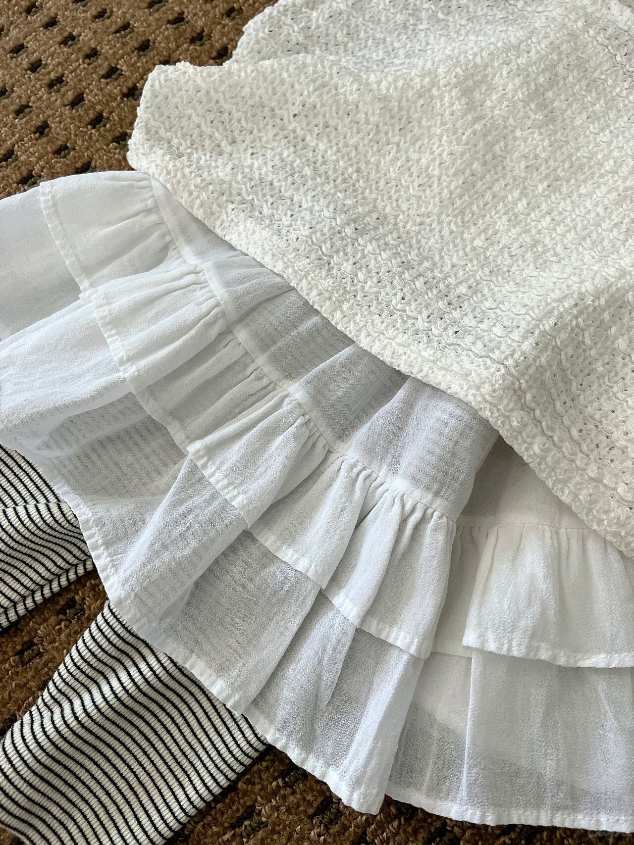 トップスと重ねてとびきり甘い印象にレイヤードするのがおすすめです。