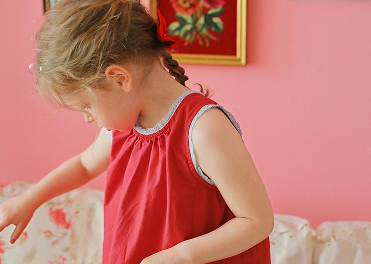すっきりとしたAラインシルエットが女の子らしい印象に