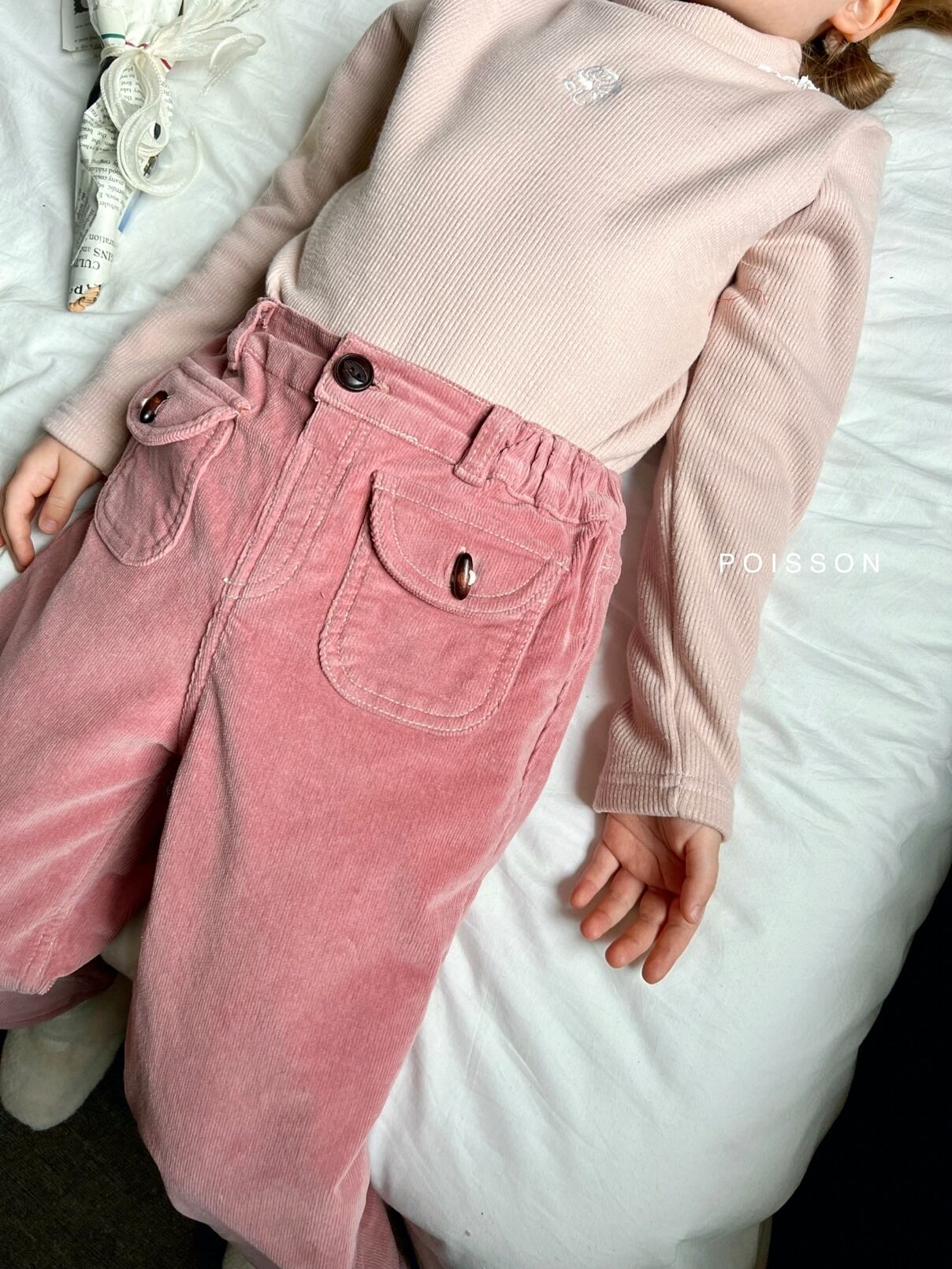 程よいワイドシルエットに裾に冬らしいカラー感がロマンチックな印象のコーデュロイパンツ