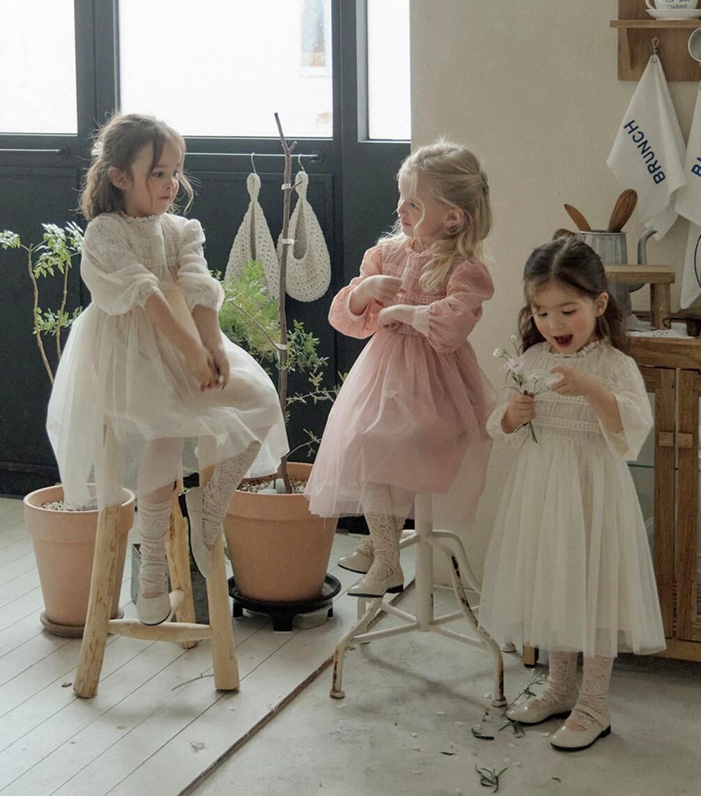 おんなの子の好きをつめこんだレースと刺繍の襟が目を惹くチュールワンピース