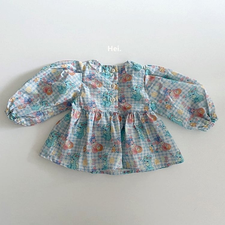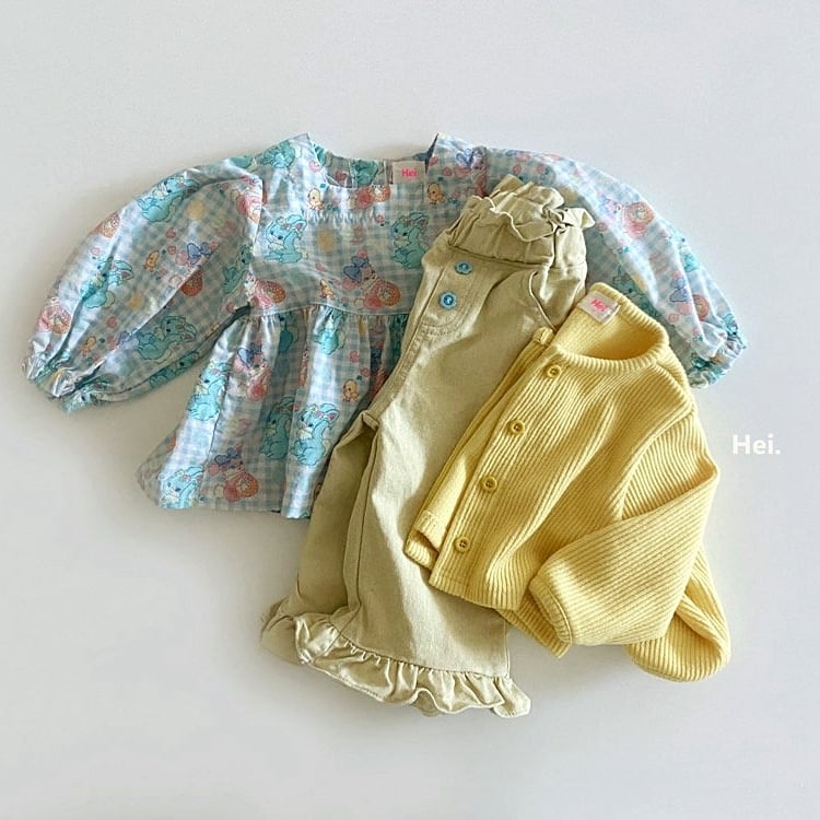 ユニークなイラストがポイントになりパフスリーブやフロントのシャーリングデザインでレトロ感を演出してます。