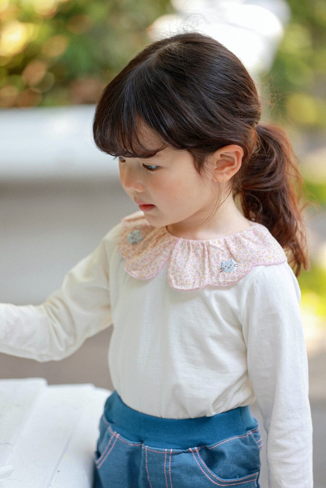 春らしい花柄の襟のデザインがポイントで程よく体にフィットするサイジングが絶妙に可愛いトップスです。