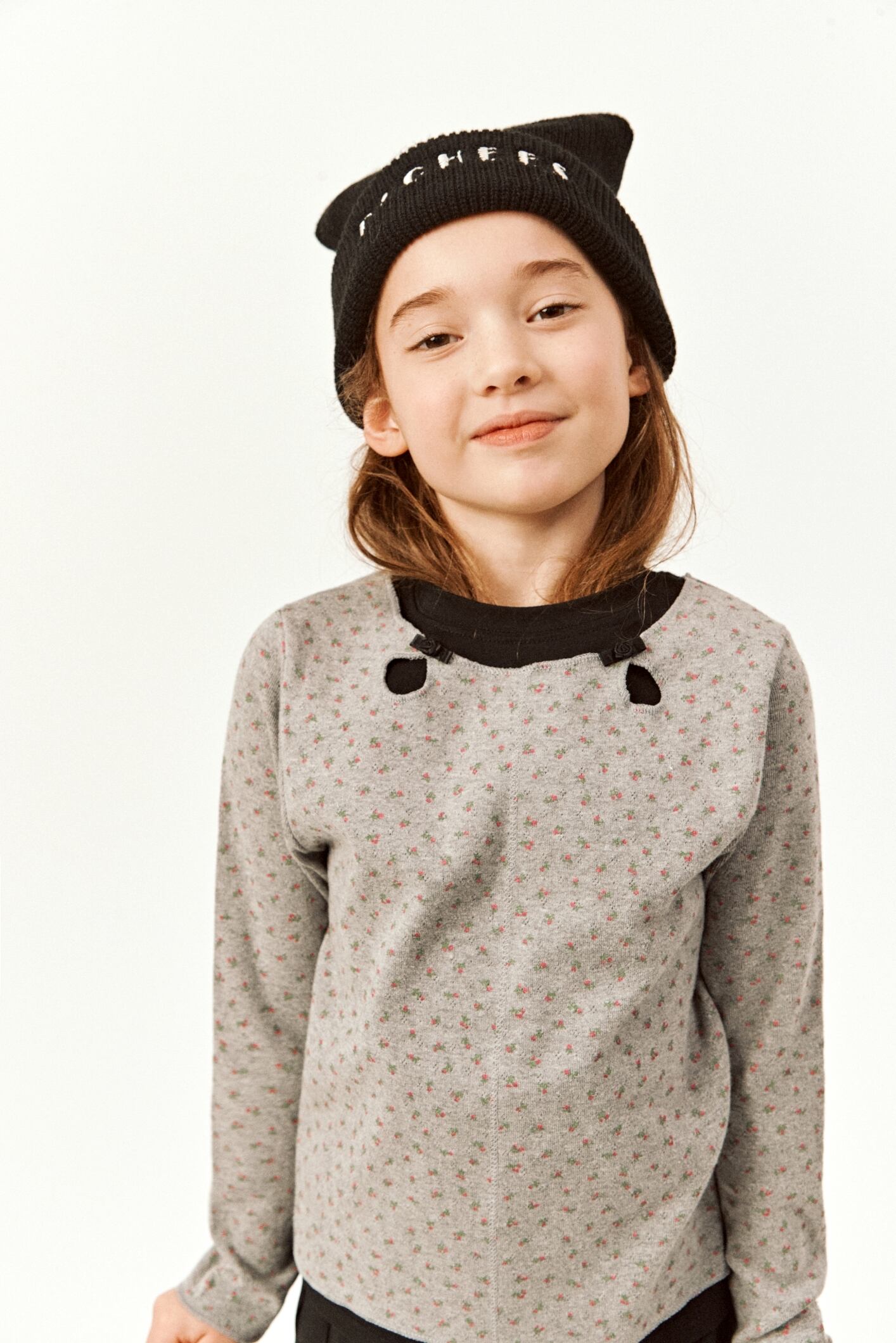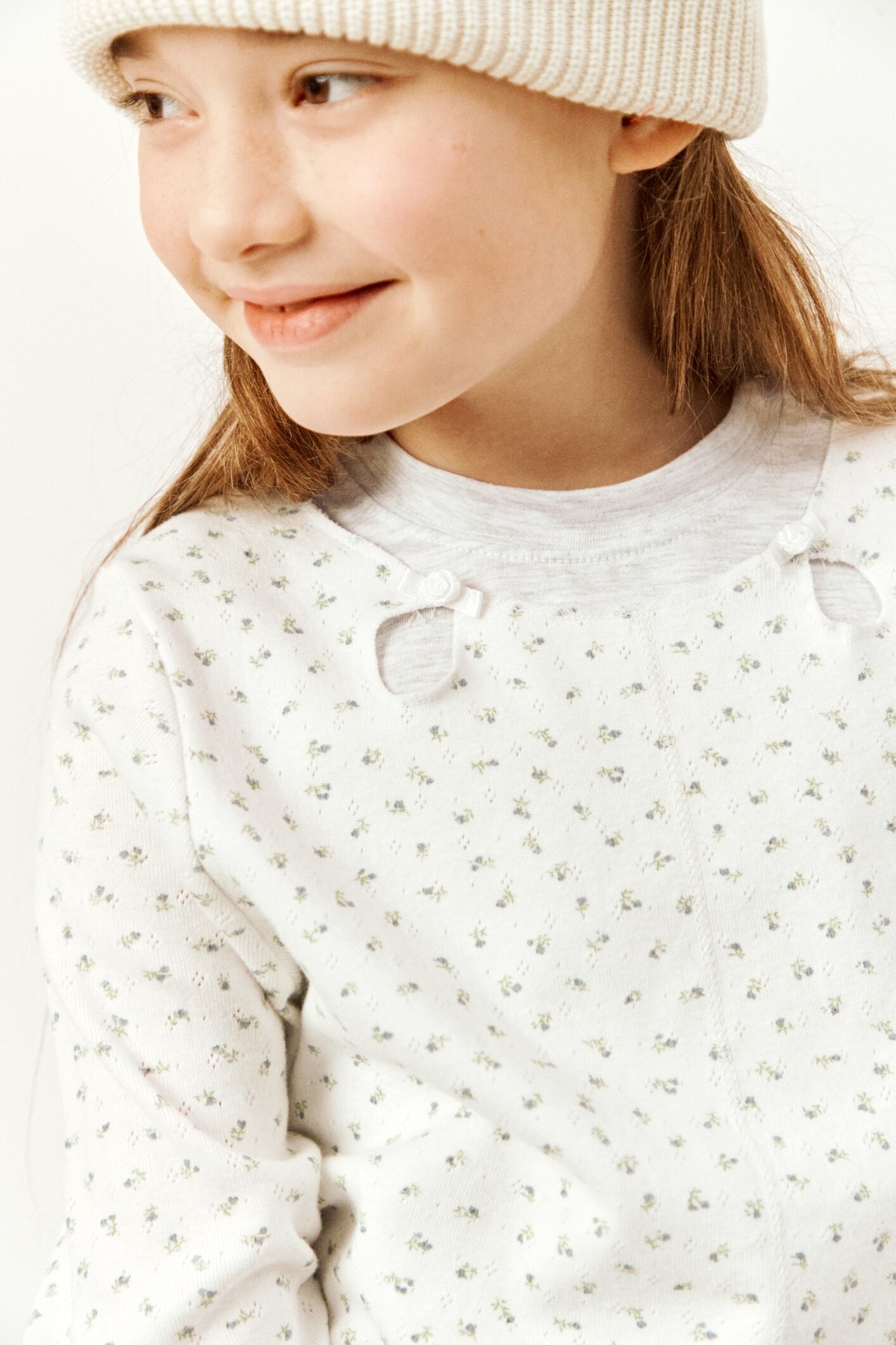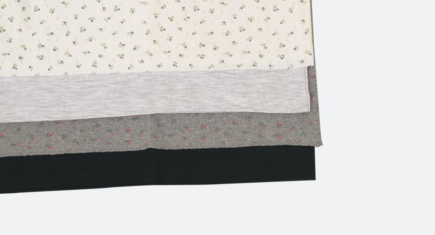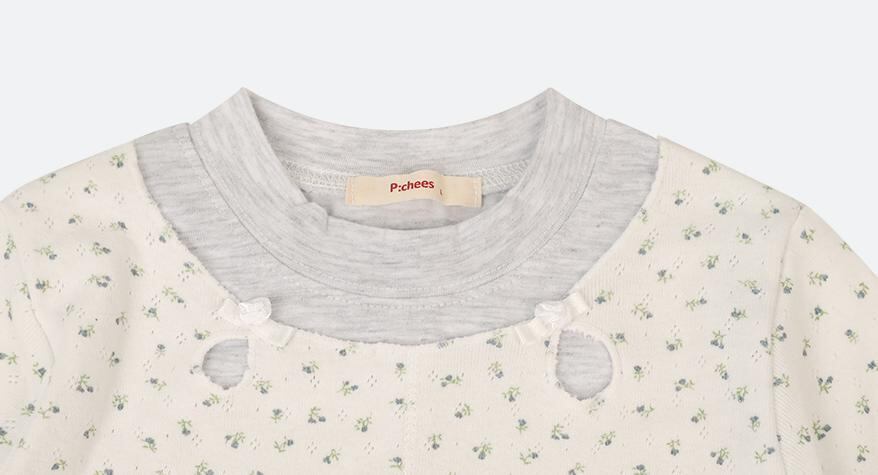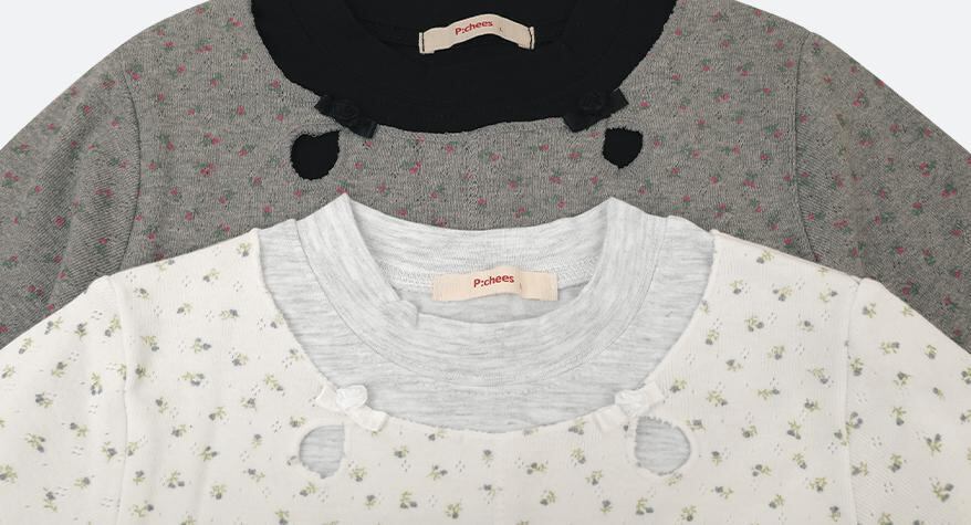 レイヤードデザインでなめらかな素材感と小さな花柄がガーリーな印象のカットソーです。