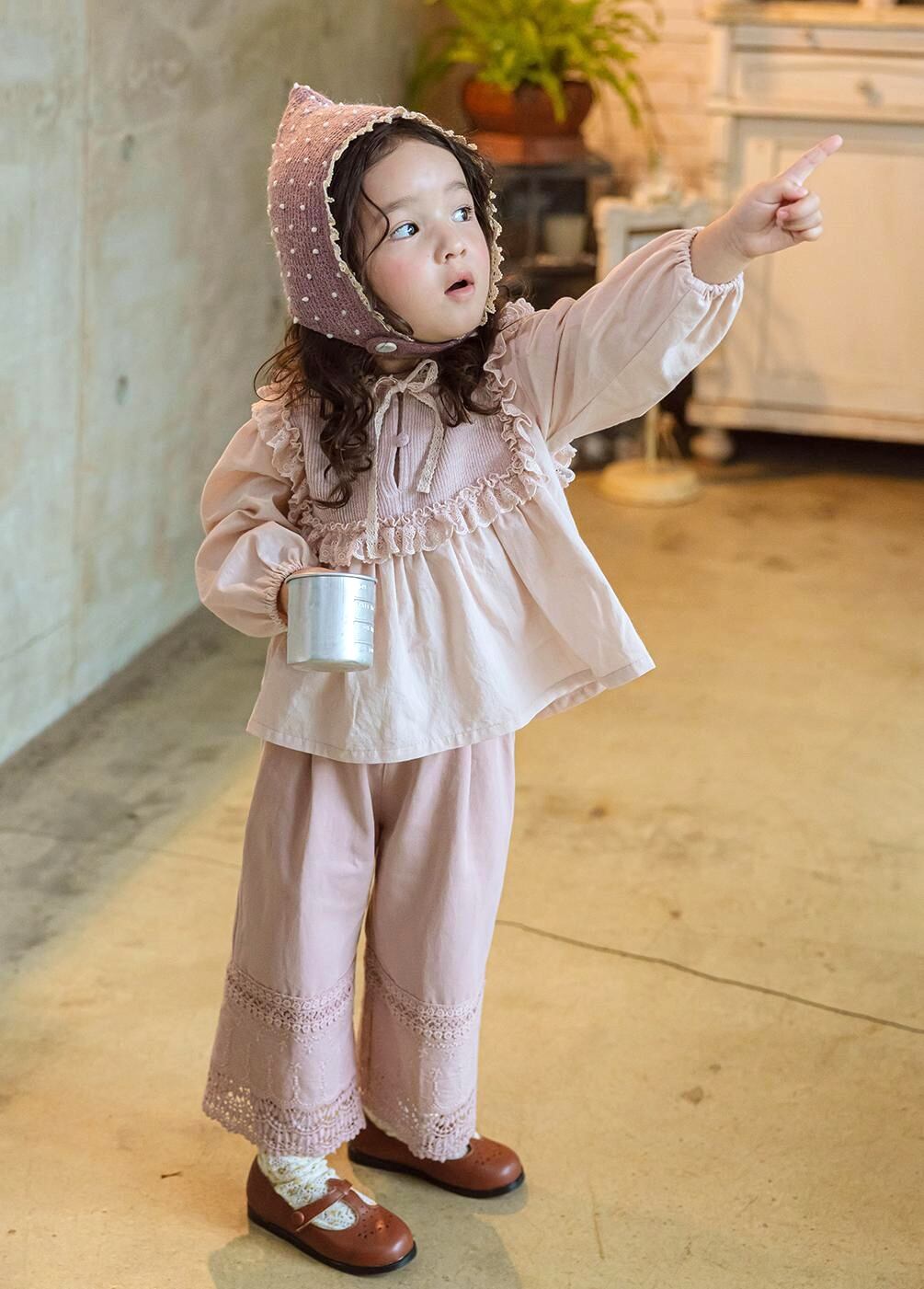 floのスカート、パンツをあわせてあげたらロマンチックなコンディネートのできあがりです。