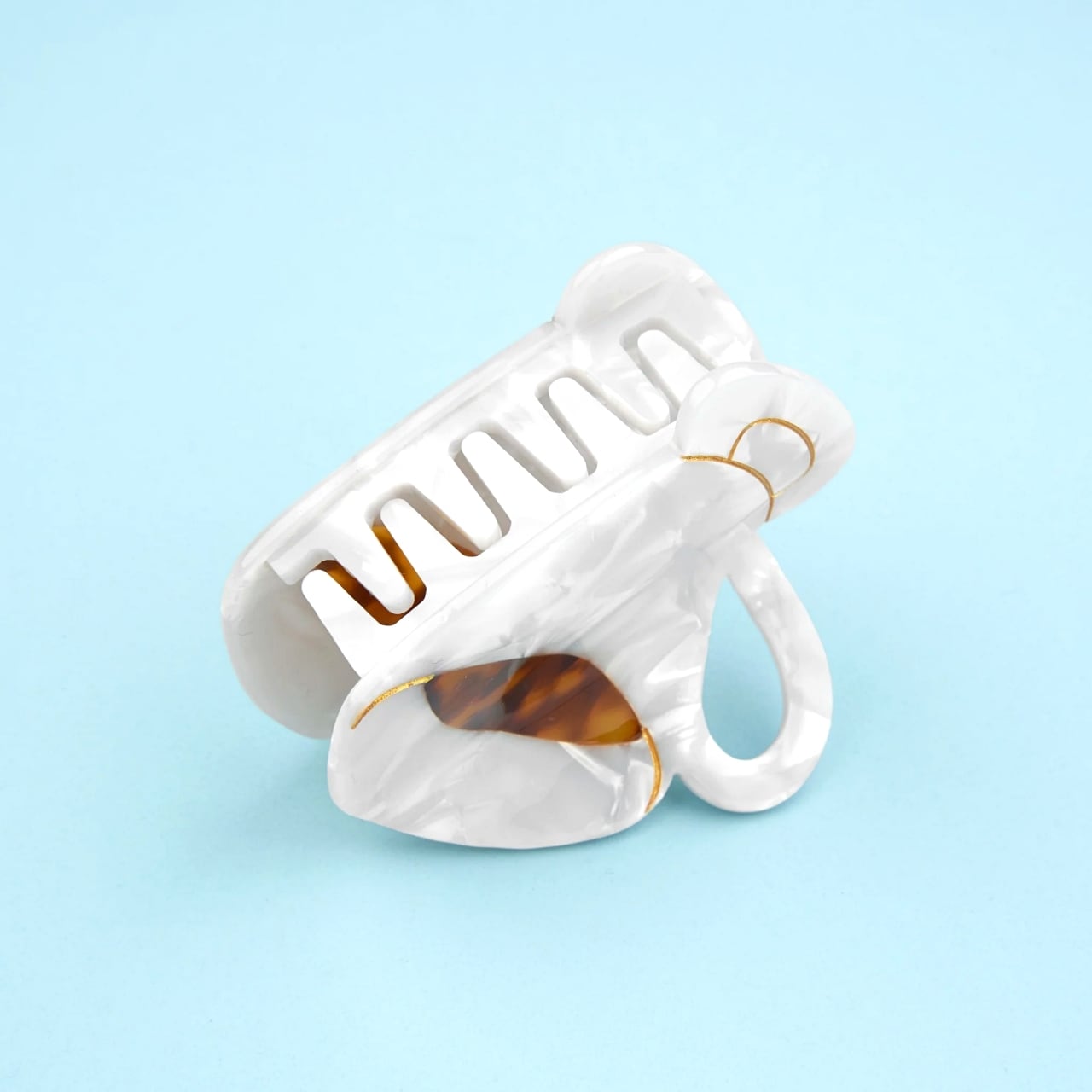 What could be more French than a cup of coffee, as a tribute to the strong Espresso enjoyed at dawn leaning against the counter of the brasserie, or the tasty latte at Grandma’s with a good slice of cake. We love the hair claw clip version, which brings out the best in all our looks!