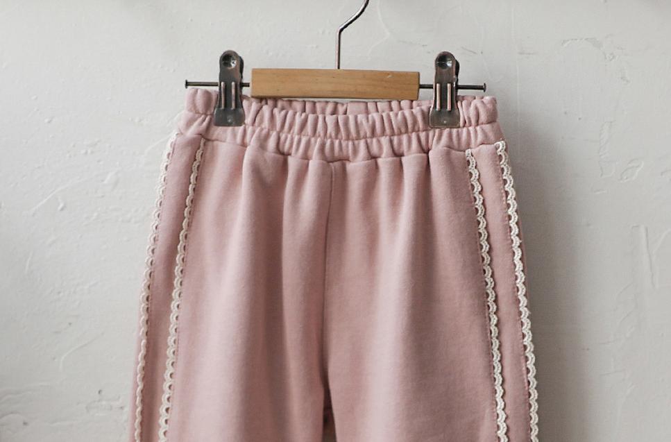 サイドラインのレースデザインがポイントで同じ素材のスウェットとのセットアップもおすすめです。