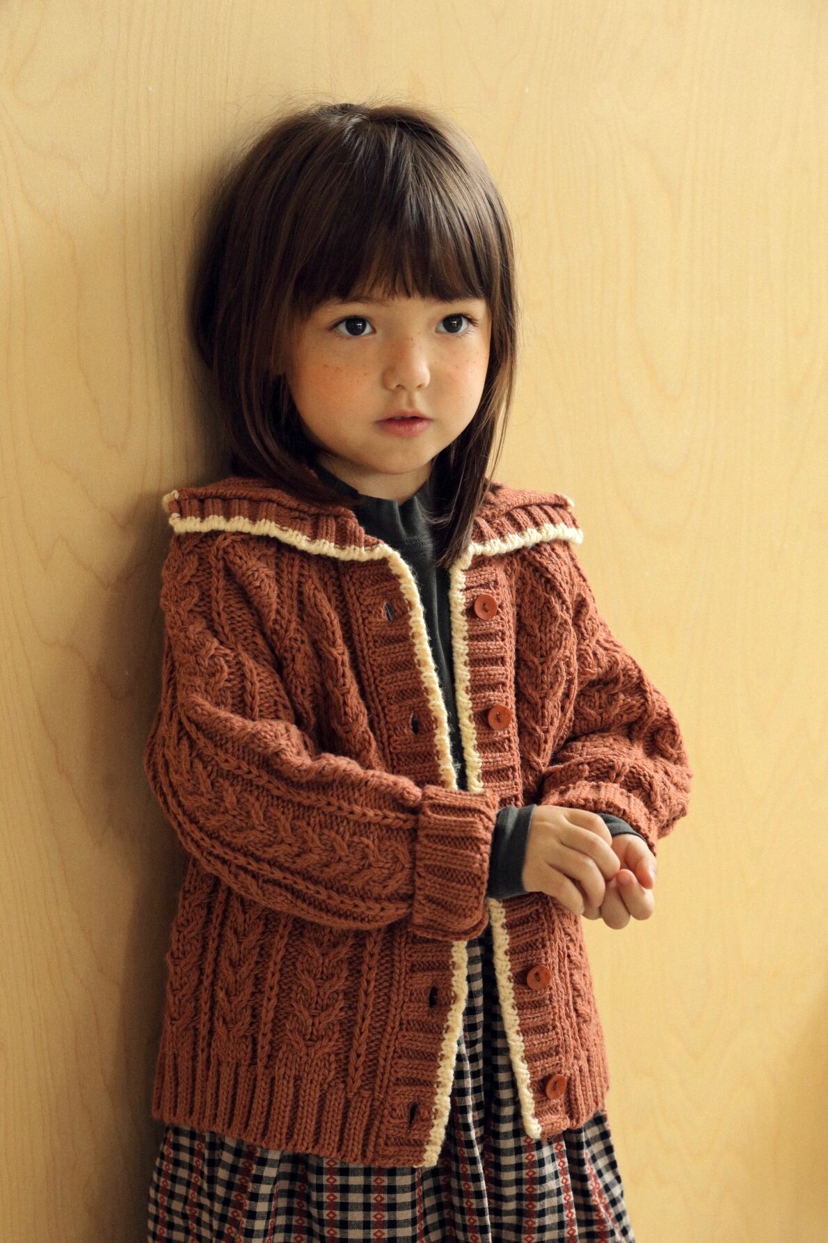 シンプルなデザインでヴィンテージ感のあるケーブルニットデザインがかわいいカーディガンです。