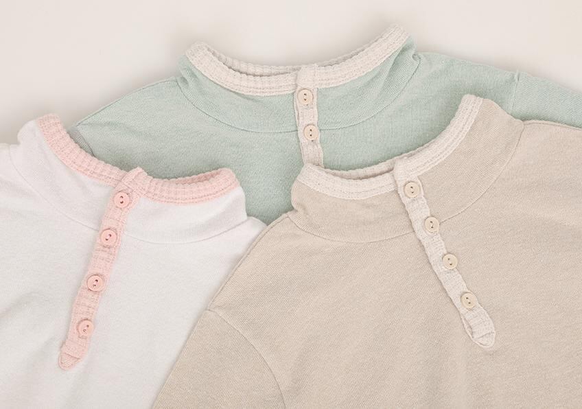 ネックのパイピングのデザインと程よく体にフィットするサイジングが絶妙に可愛いトップスです。