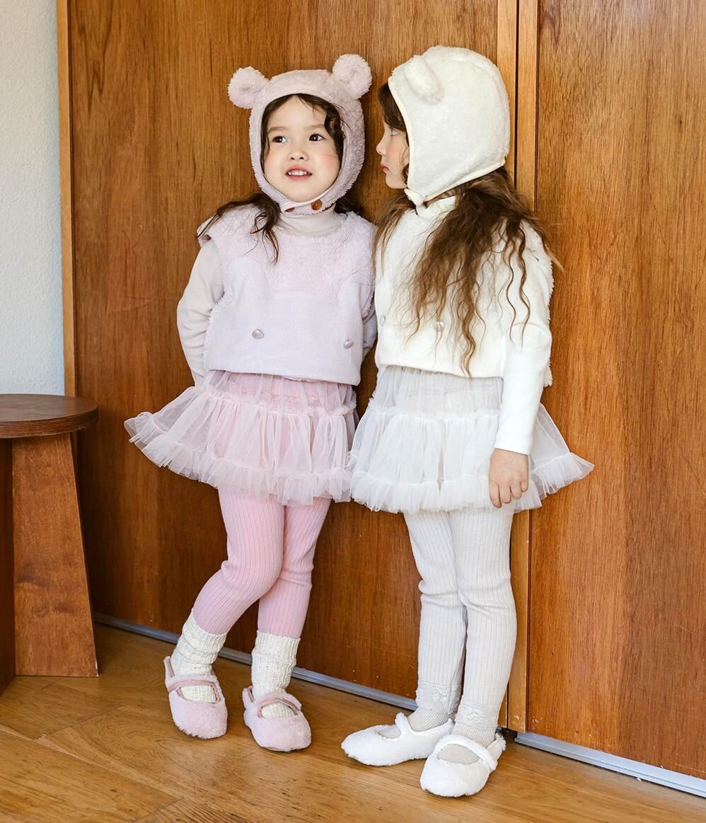 秋冬らしいカラー感に裾のレースがキュートでワンピースやスカートのコーデに欠かせない一枚あると便利なアイテムです。